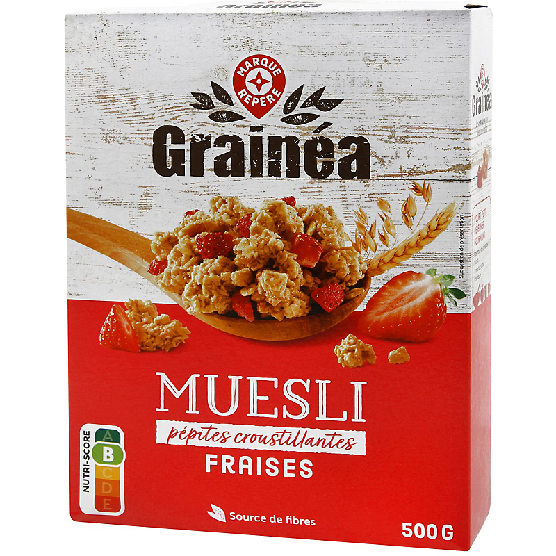 Pépites croustillantes de céréales avec des morceaux de fraises lyophilisées GRAINEA