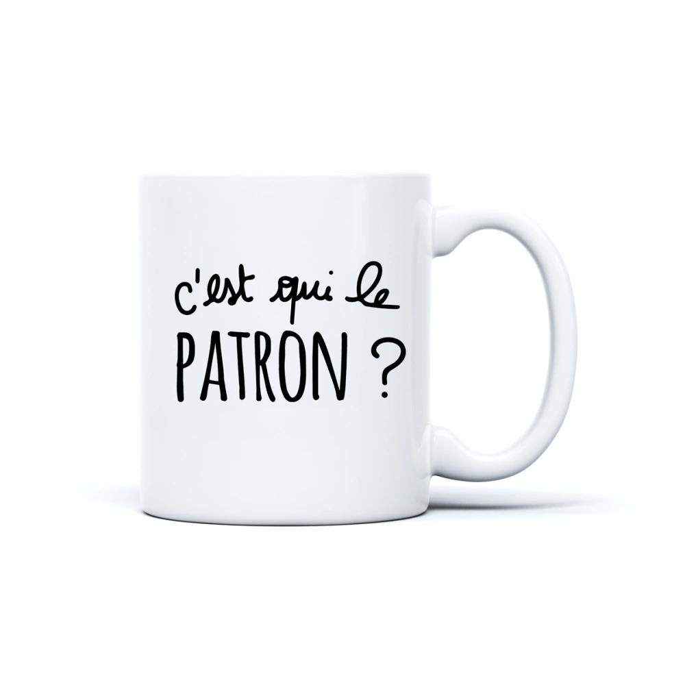 Mug sur fond blanc avec message rigolo du type : 'C'est qui le patron' ! Idéal pour un cadeau au bureau si vous voyez ce que je veux dire.... Dimensions : Diam 8 x 9.5 cm Matière : Porcelaine