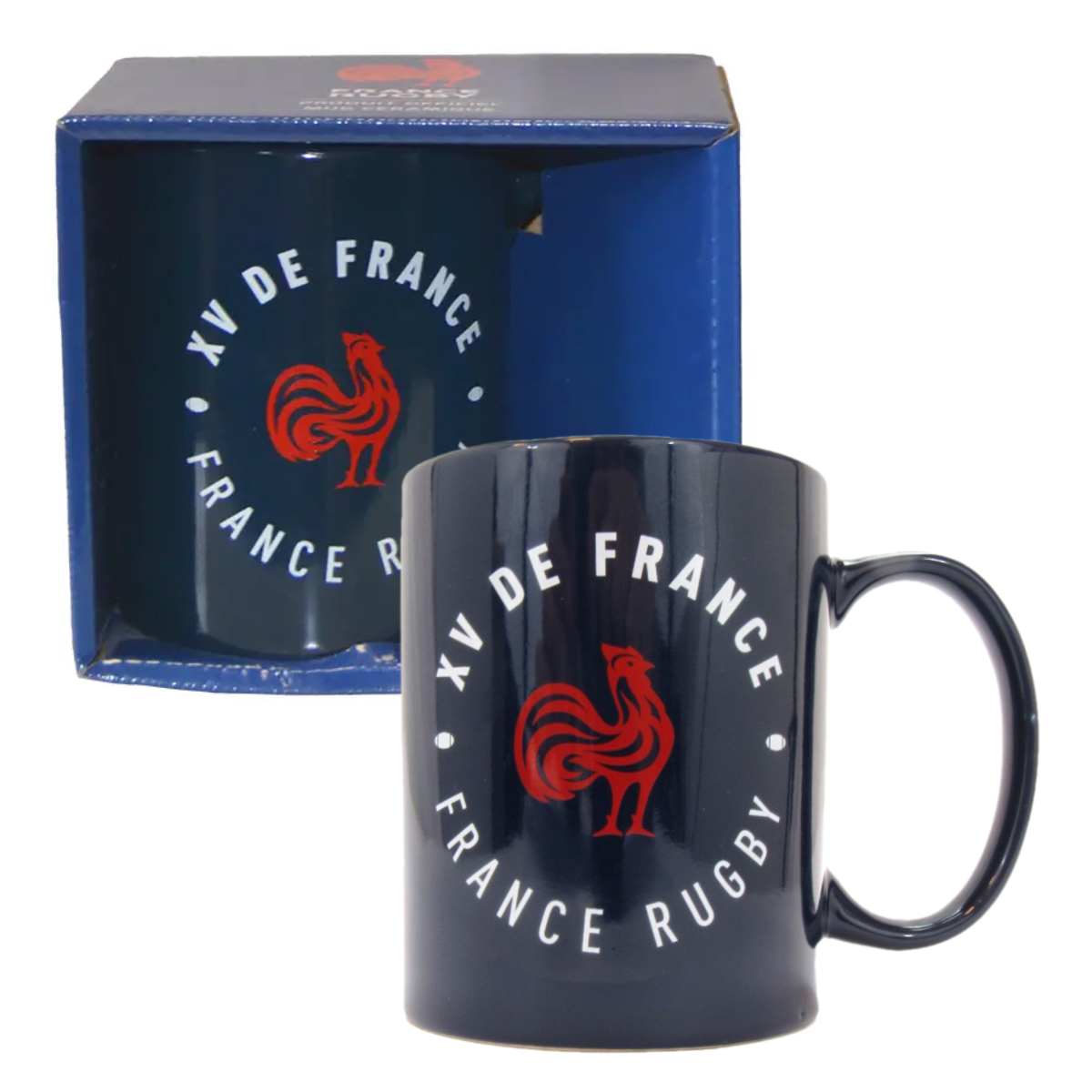 Mug en céramique XV de France - France Rugby Céramique Dimensions : Hauteur 10 cm - Diamètre 8 cm Capacité : 350 ml Entretien : Passe au lave-vaisselle et au micro-ondes, pour un usage pratique et sans tracas. Affichez votre passion pour le rugby avec ce mug en céramique sous licence officielle du XV de France. Parfait pour savourer votre café ou thé tout en soutenant les Bleus, ce mug allie style et praticité.