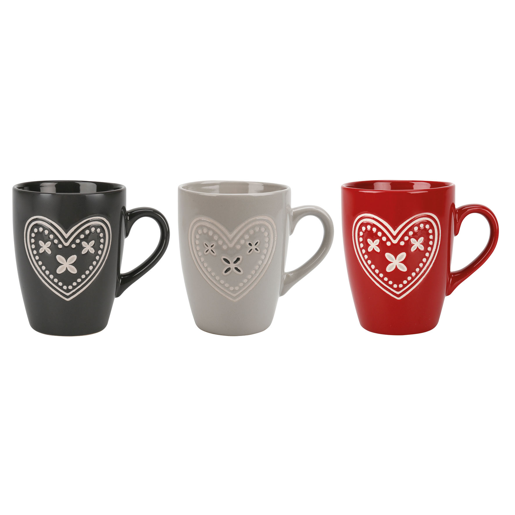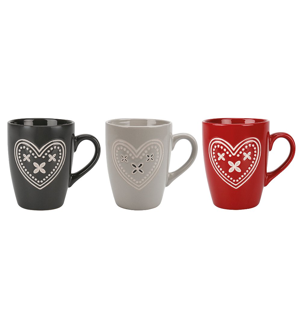 Mug 32 cl Grès Gamme COEUR ROMANTIQUE Ø 8 cm H 10.5 cm 3 Assortiments Coloris Gris Décor Romanesque