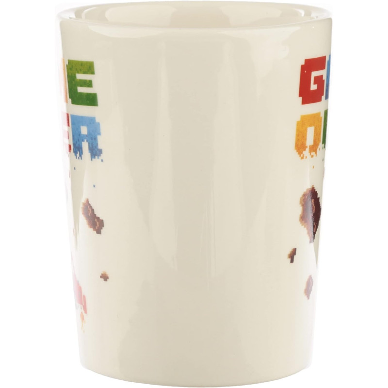 - Design Unique : Inspiré des moments cultes des jeux vidéos, le mug présente un imprimé "Game Over" en pixels, idéal pour démarrer votre journée avec une touche de nostalgie ludique.