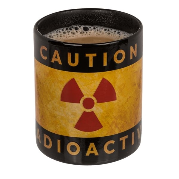 Ce mug avec un motif pictogramme de radioactivité est votre allié pour vous indiquer la température de votre boisson. Elle présente également un message de mise en garde. Votre entourage n'osera certainement pas y toucher !* Matière : céramique * Dimensions : 9 x 8,5 cm * Capacité : env. 300 ml * Compatible lave-vaisselle * Change de couleur au contact de la chaleur Fonctions : mug thermo-réactif Contenu : 1 mug magique réactif à la chaleur image radioactif