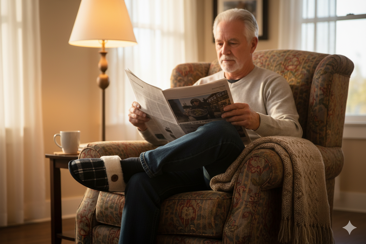 Le confort chaleureux du style classique. Ces mules homme à motif écossais allient légèreté, chaleur et sécurité, pour un bien-être quotidien tout au long de l’hiver. • Style traditionnel revisité Le dessus en tissu jacquard à carreaux écossais confère un charme intemporel. Un bouton cousu sur le revers en fourrure apporte une touche fantaisie élégante et discrète. • Douceur et chaleur intérieure L’intérieur entièrement fourré enveloppe le pied d’une chaleur bienfaisante. La doublure douce apporte une sensation de confort immédiat, parfaite pour les journées fraîches à la maison. • Semelle souple et sécurisante La semelle fine et légère en mousse flexible offre un excellent amorti tout en préservant la stabilité. Des patches antidérapants intégrés assurent une meilleure adhérence au sol, évitant les glissades. • Légèreté et praticité au quotidien Faciles à enfiler, ces mules se portent naturellement. Elles offrent la liberté de mouvement idéale pour les seniors souhaitant conjuguer confort et autonomie. • Élégance discrète et bien-être durable Disponibles en trois teintes classiques : – Marron : chaleureux et intemporel – Bleu marine : sobre et élégant – Noir : chic et indémodable Ces pantoufles sont le compagnon parfait des journées cocooning ou des soirées paisibles au coin du feu. Tailles disponibles : 41/42, 43/44, 45/46