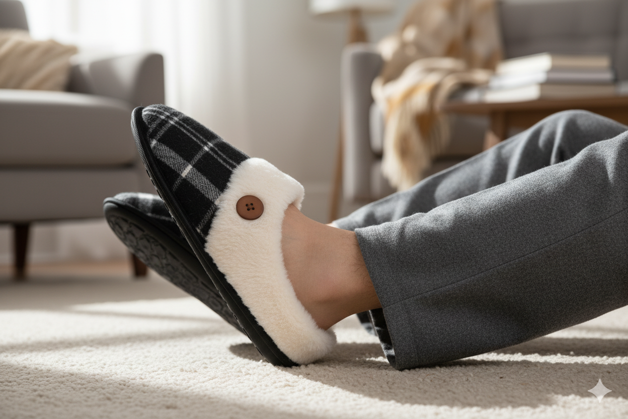 | Plus produit | Style classique revisité : Pantoufles homme écossaises ornées d’un bouton décoratif. Un design chaleureux et élégant pour un confort quotidien, inspiré des modèles traditionnels revisités avec raffinement.Intérieur doux et chaud : Fourrure synthétique intérieure ultra moelleuse offrant chaleur et douceur immédiate. Confort idéal pour affronter l’hiver à la maison.Semelle fine, souple et sûre : Semelle légère avec patches antidérapants assurant stabilité et sécurité. Confort amortissant, parfaite pour les sols intérieurs lisses.Légèreté et enfilage facile : Format mule à enfiler rapidement, sans effort. Parfait pour les seniors recherchant la simplicité d’utilisation et une marche agréable. |