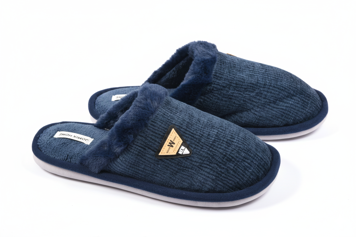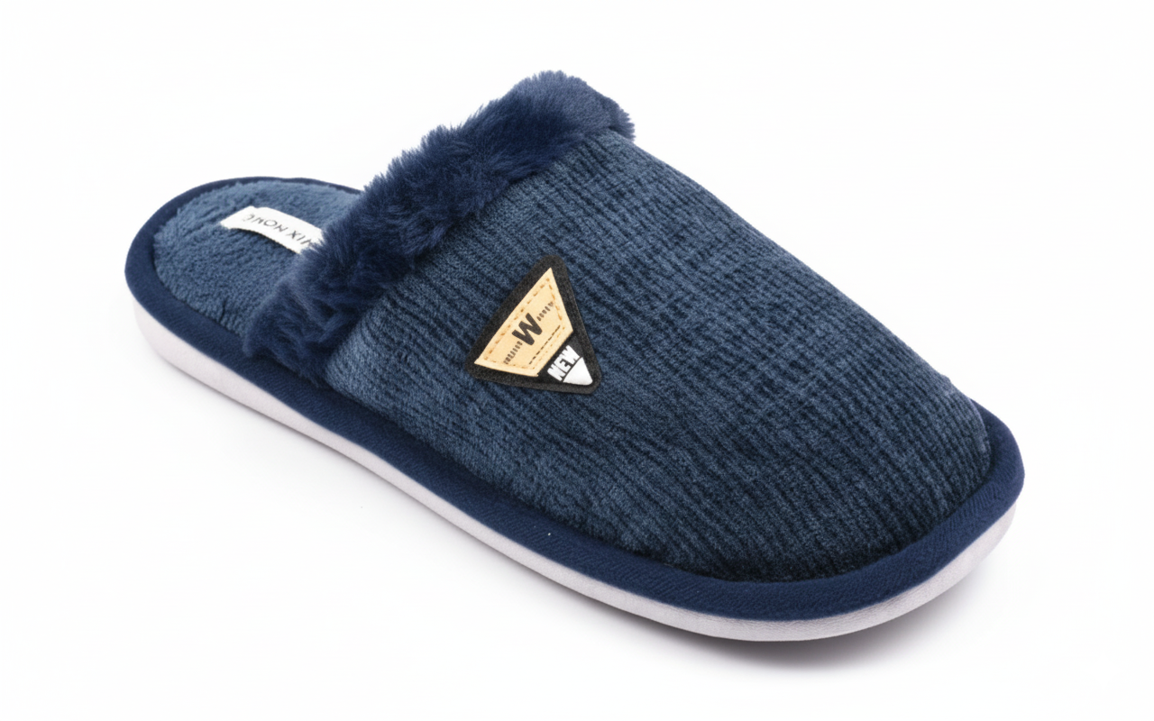 Confort moderne et élégance intemporelle. Ces mules homme en velours ondulé marient avec brio chaleur, maintien et style contemporain. Leur design soigné et leur semelle haute performance en font un essentiel de l’hiver. • Design raffiné et masculin Le dessus en textile velours ondulé fin procure une allure élégante, moderne et discrète. Un petit patch cousu sur le côté apporte une note fantaisie subtile et actuelle, sans en faire trop. • Intérieur microfibre polaire ultra doux L’intérieur doublé en microfibre polaire enveloppe le pied d’une chaleur agréable. Chaque pas est une sensation de confort et de douceur, parfaite pour les soirées froides. • Confort technique absolu La semelle intérieure combine mousse à mémoire de forme et couche de gel amortissante. Elle s’adapte à la morphologie du pied, soulage la pression et assure un confort durable même après plusieurs heures. • Sécurité et stabilité La semelle extérieure en caoutchouc rigide et strié offre une excellente adhérence au sol. Sa structure antidérapante garantit une marche sûre, que ce soit sur carrelage, parquet ou lino. • Élégance du détail et praticité Le revers en fourrure courte souligne le style cocooning sans alourdir le design. Faciles à enfiler, ces mules incarnent le parfait équilibre entre esthétique, confort et fonctionnalité. Disponibles en quatre coloris sobres et modernes : – Bleu marine : chic et décontracté – Noir : sobre et élégant – Marron : chaud et intemporel – Gris : moderne et apaisant Tailles disponibles : 40, 41, 42, 43, 44, 45