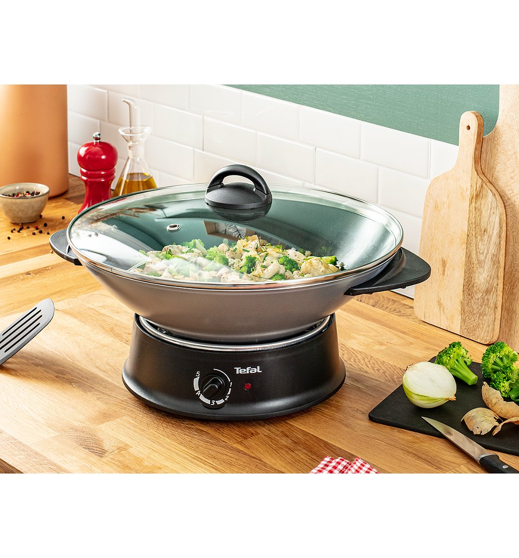 Avec Multi Wok, savourez facilement une cuisine exotique, en toute simplicité ! Pratique, l'indicateur Thermo-spot vous indique si le wok est à la bonne température pour démarrer votre cuisson. Grâce à son revêtement antiadhésif pas de nécessité d'ajout de matières grasses, pour une cuisson légère et des aliments qui n'accrochent pas. Ce wok facile d’utilisation possède un couvercle en verre pour une surveillance sans effort et une résistance en parfait contact avec le wok qui garantit des résultats savoureux, jour après jour.