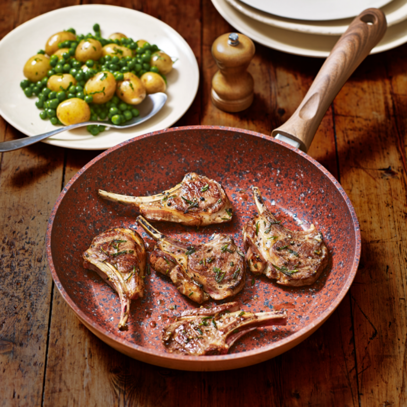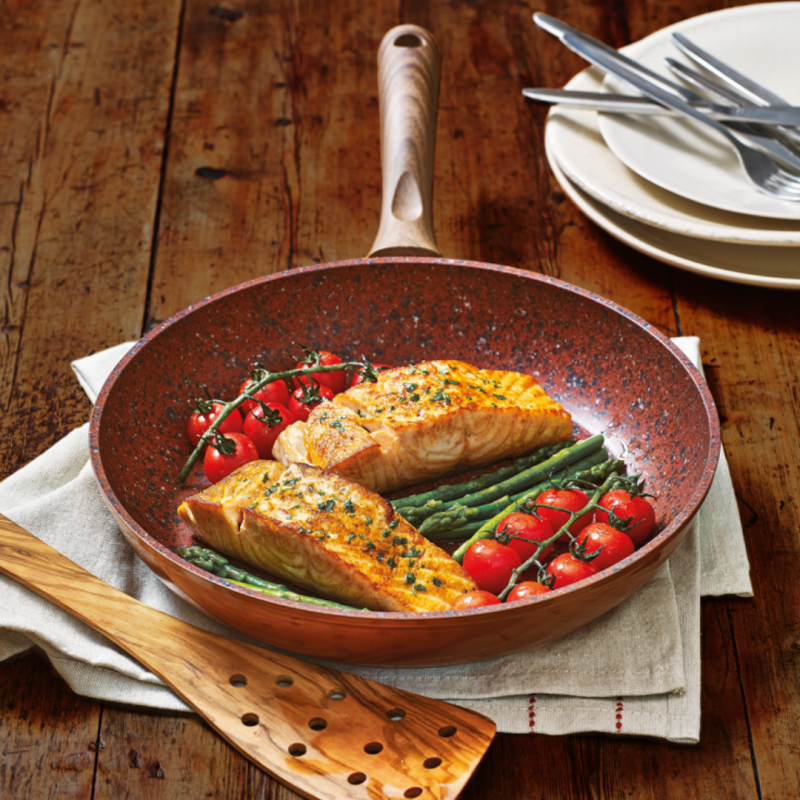 - Résistante : Elles supportent des températures jusqu'à 350°degrés. Ces poêles sont en aluminium forgé et possèdent un fond en acier très résistant pour une diffusion homogène de la chaleur et une finition cuivre de haute qualité. Vos poêles granits sont solides, durables et polyvalentes.