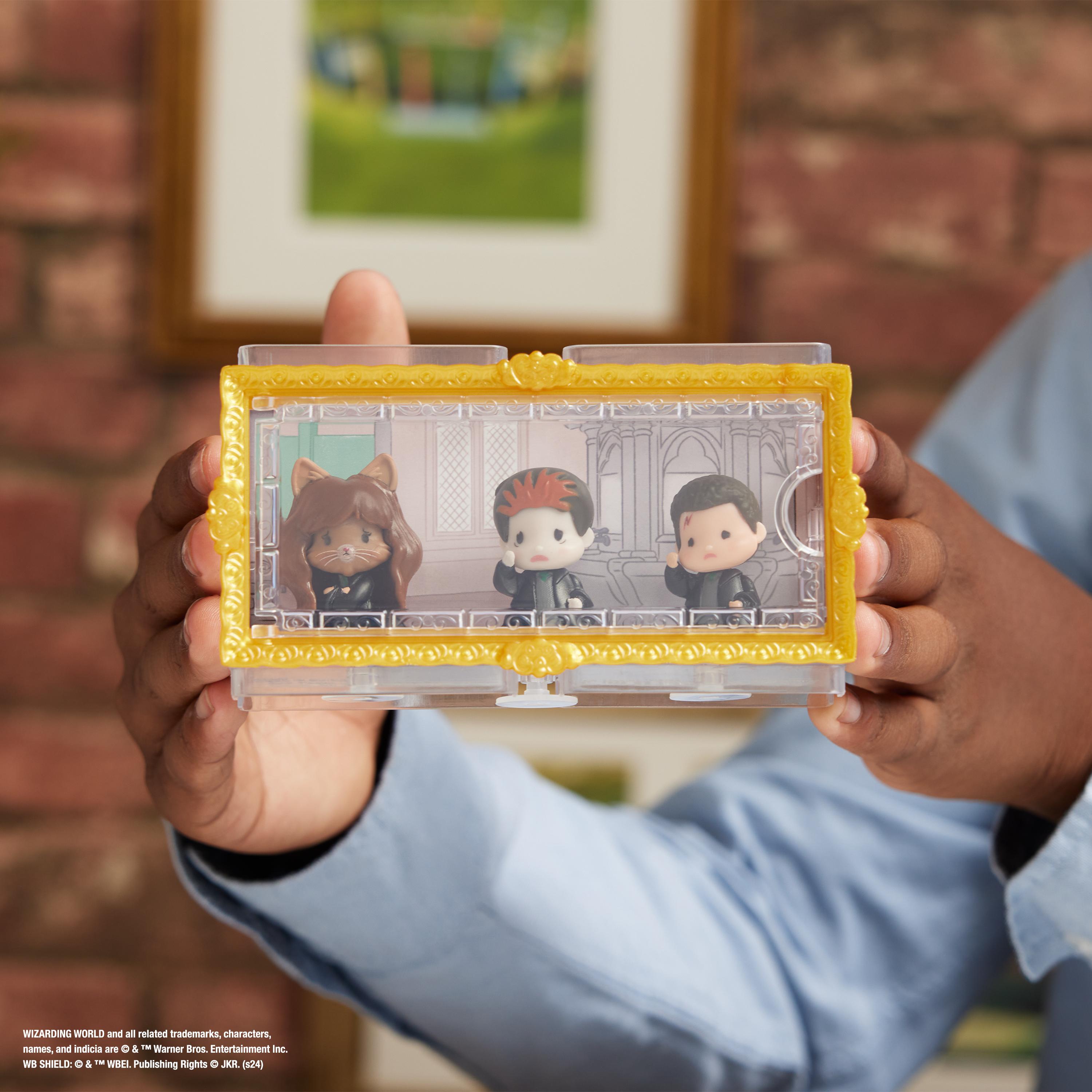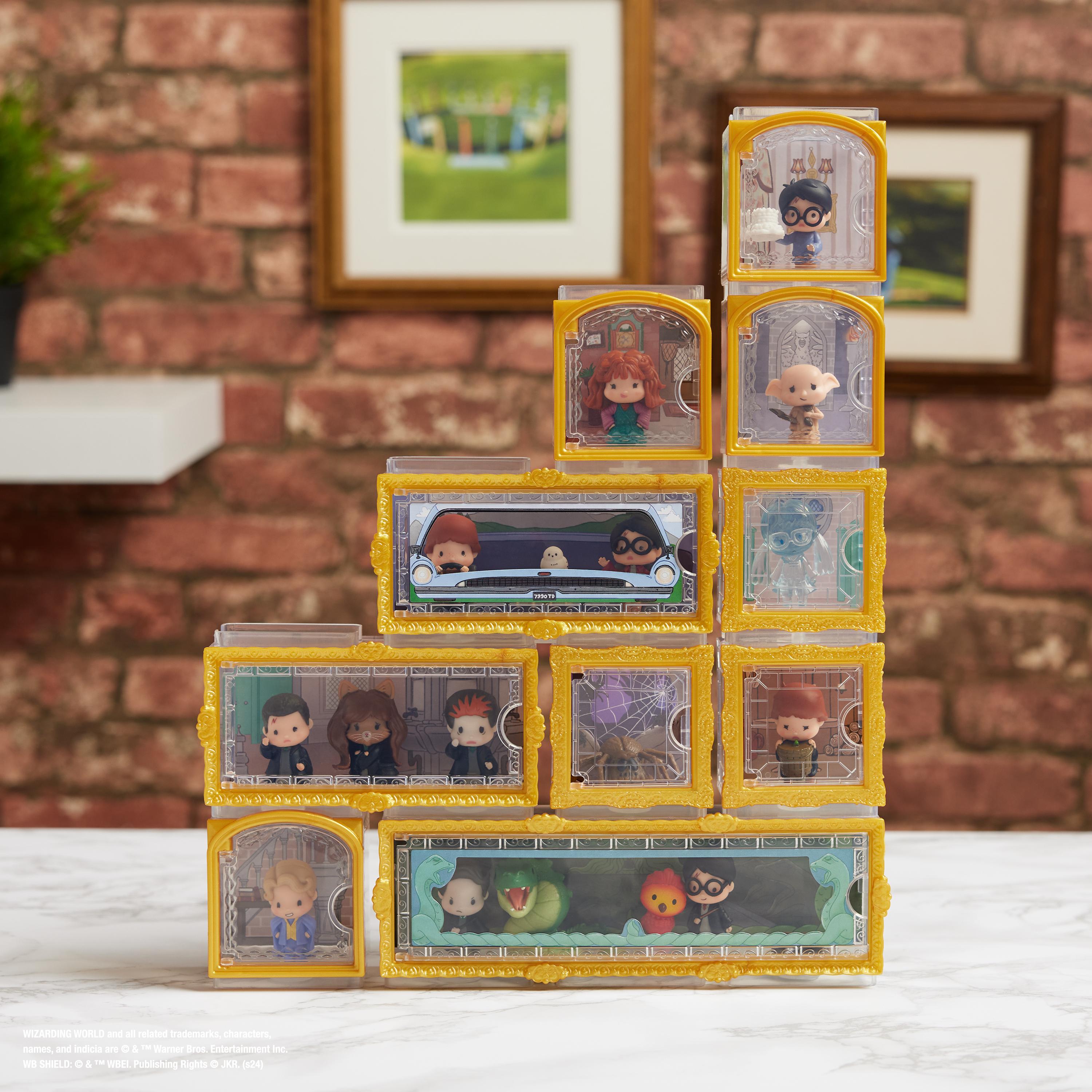 Des mini figurines à collectionner dans des boîtes représentant des scènes de lieux cultes de la saga Wizarding World Harry Potter. Ouvre la boîte pour découvrir 1 coffret représentant une scène de l'univers Harry Potter et 3 figurines correspondant à l'univers :Hermione Granger, Ron Weasley et Harry Potter. Les figurines se placent dans l'écrin qui permet de les exposer. Les écrins s'emboitent les uns avec les autres pour se créer son propre univers Moments Magiques. Boîte fenêtre pegboardable. A partir de 6 ans.
