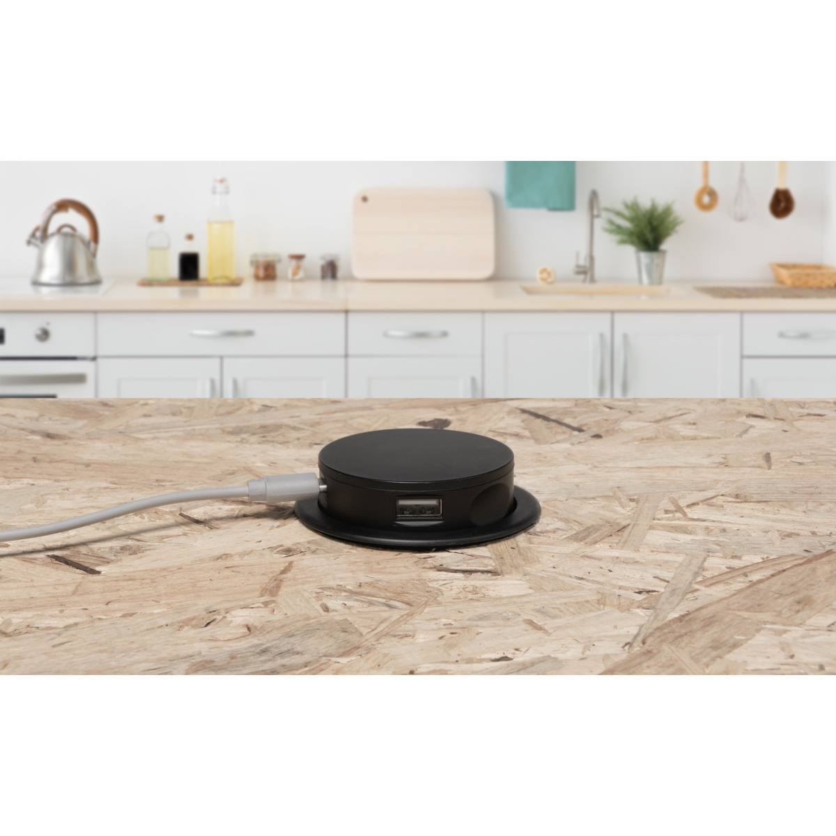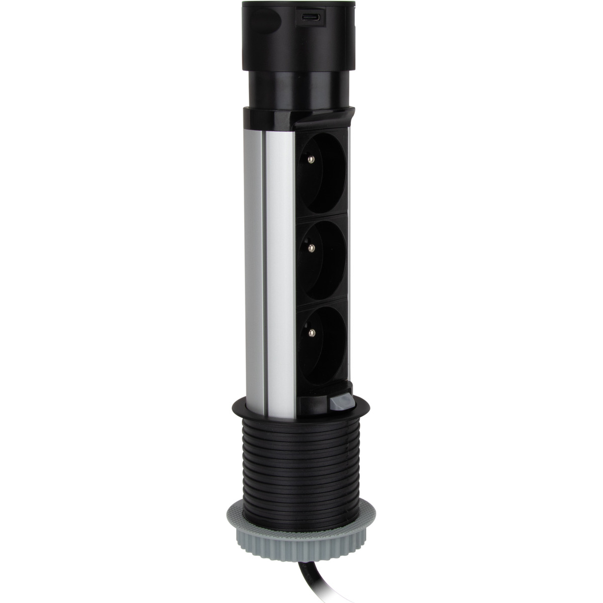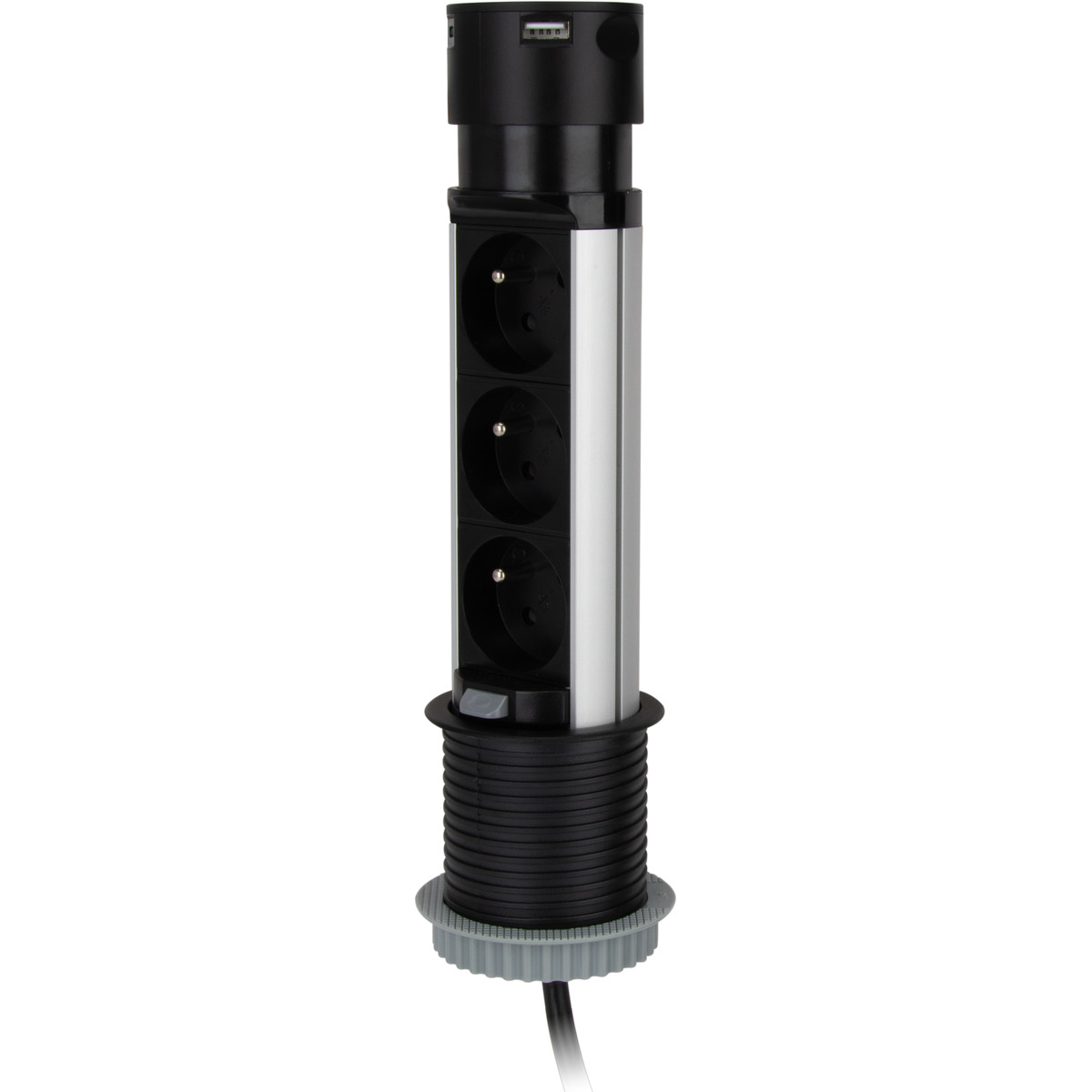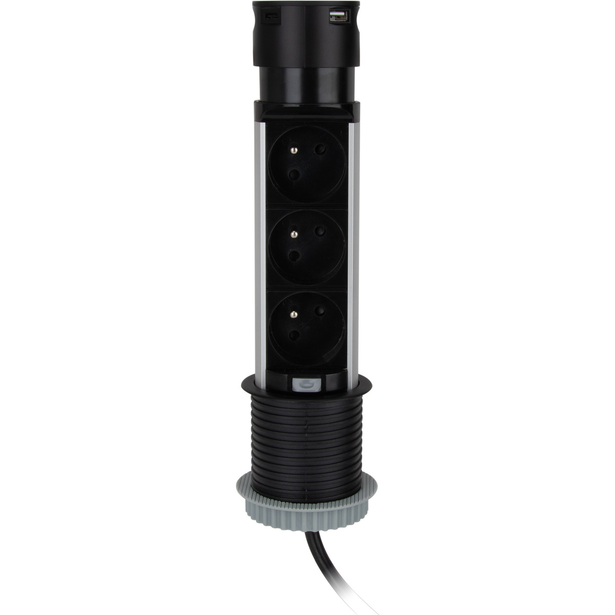 Multiprise escamotable 3x16A + 2 USB - Noir - Otio
