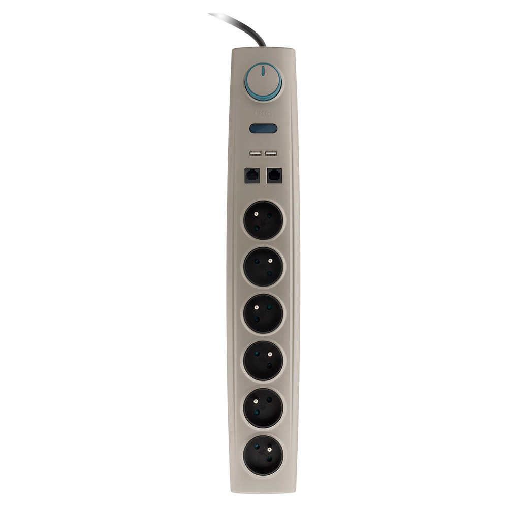 | Libellé | Multiprise parafoudre 6 prises 16A avec interrupteur + USB RJ11 - Otio |