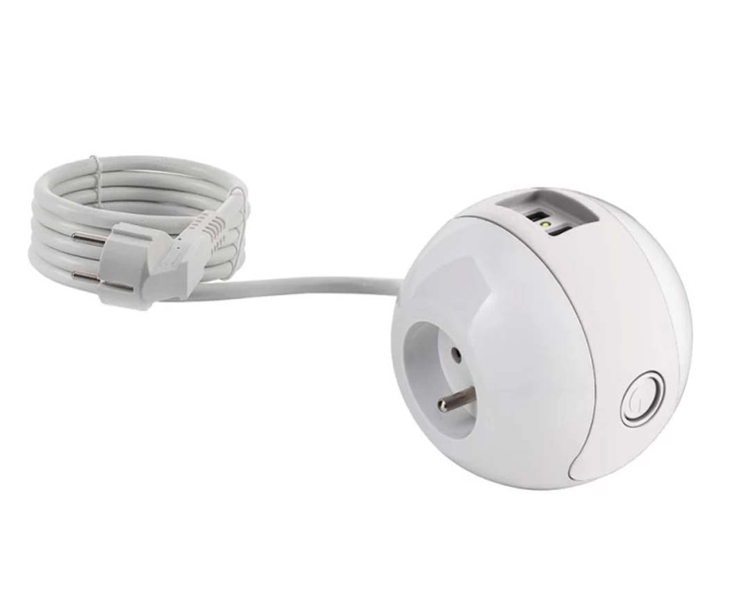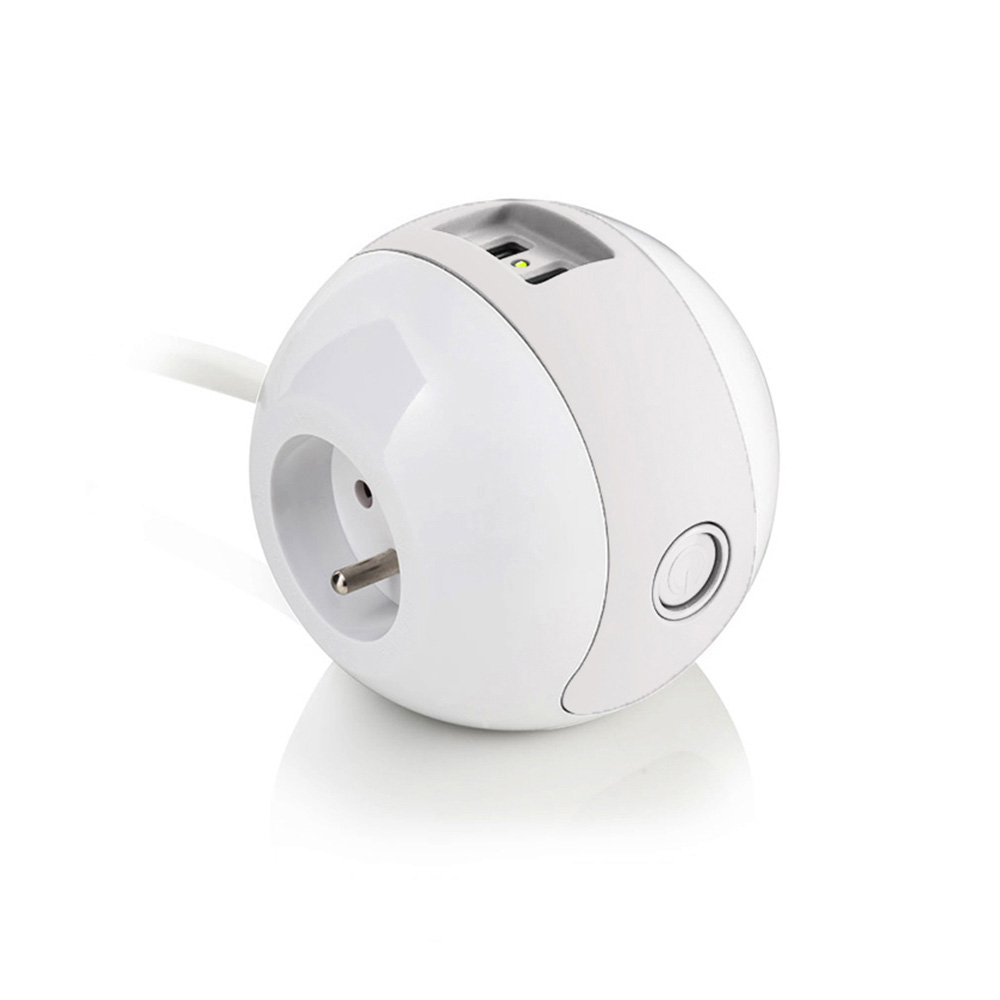 Multiprise ronde Wattball 2x 16A + 1 x 6A + USB 2.1A WATT & CO Blanche