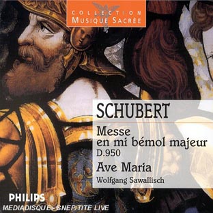 | Liste des pistes | <ul class ='liste-piste'><li class='row-piste'>1.1 . Messe en mi bemol majeur, d. 950 : kyrie - Franz Schubert,</li><li class='row-piste'>1.2 . Messe en mi bemol majeur, d. 950 : gloria - Franz Schubert,</li><li class='row-piste'>1.3 . Messe en mi bemol majeur, d. 950 : credo - Franz Schubert,</li><li class='row-piste'>1.4 . Messe en mi bemol majeur, d. 950 : sanctus - Franz Schubert,</li><li class='row-piste'>1.5 . Messe en mi bemol majeur, d. 950 : benedictus - Franz Schubert,</li><li class='row-piste'>1.6 . Messe en mi bemol majeur, d. 950 : agnus dei - Franz Schubert,</li><li class='row-piste'>1.7 . Messe en mi bemol majeur, d. 950 : ave maria : ave maria - Franz Schubert,</li><li class='row-piste'>1.8 . Ave maria - Franz Schubert,</li></ul> |
