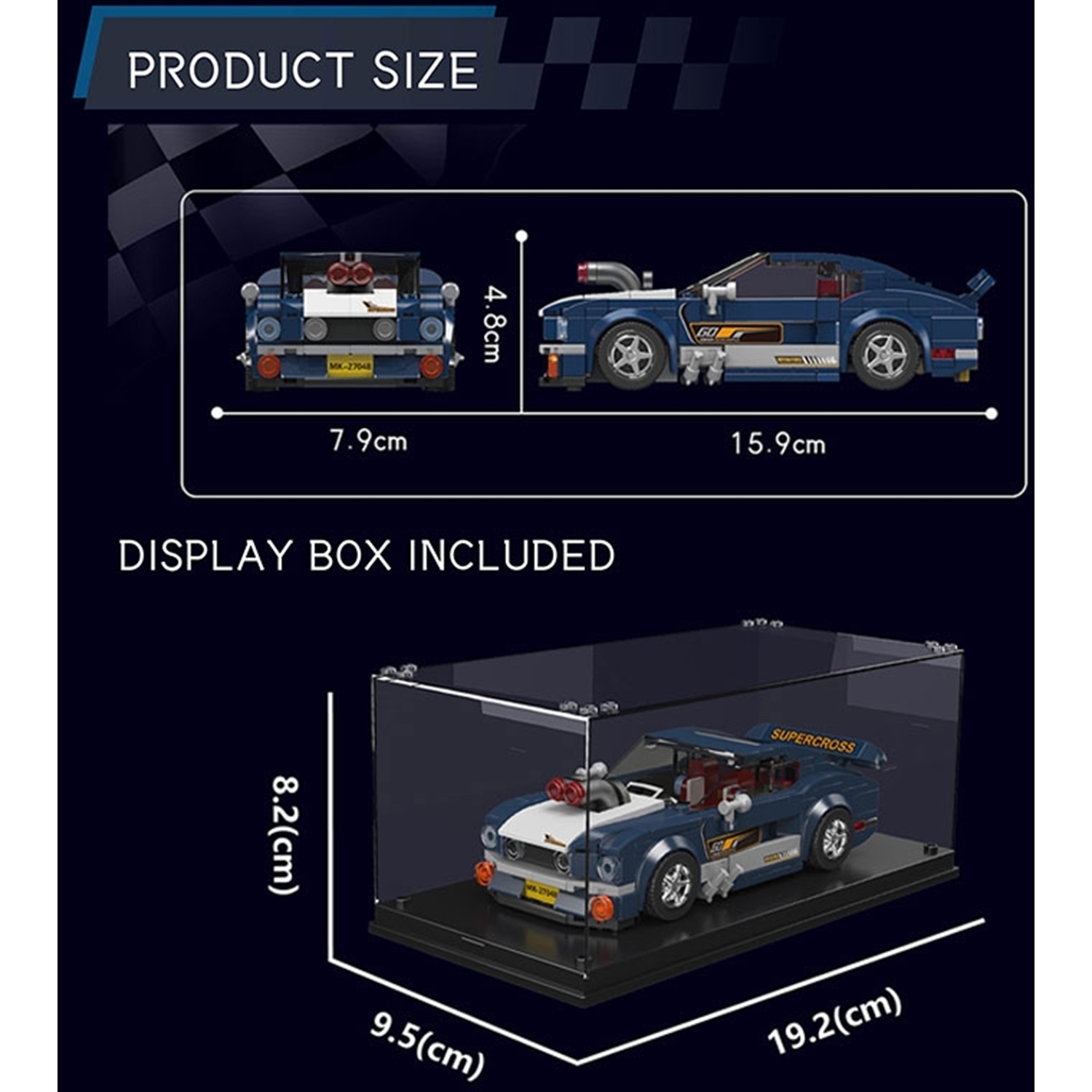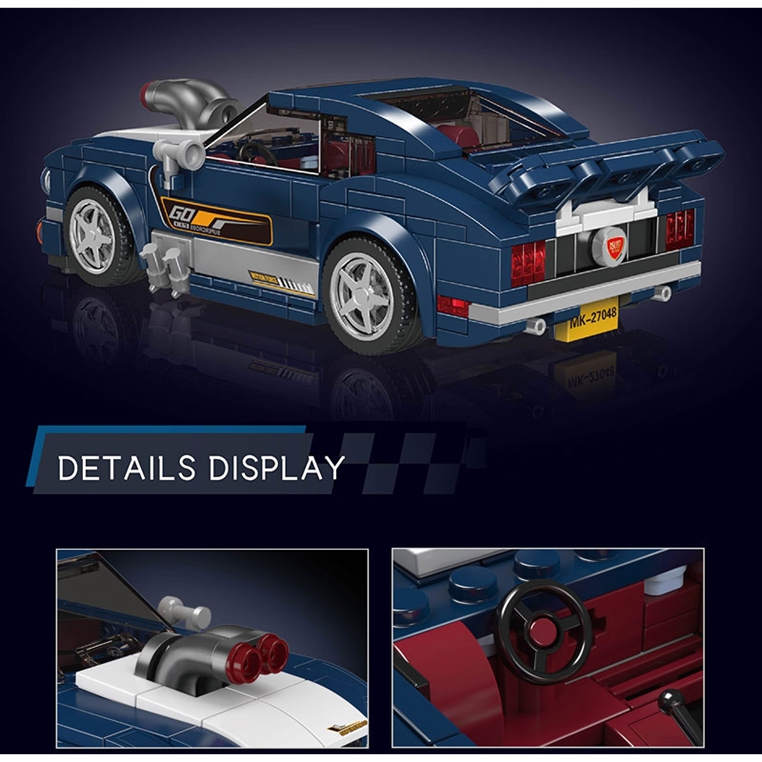Mould King 27048 Mustang 1967 + Vitrine - - Cette voiture de sport classique apporte une véritable ambiance de circuit à votre étagère : avec ses autocollants de toit saisissants, son numéro de départ sur le flanc et ses deux pots d'échappement sportifs, le modèle ressemble instantanément à une voiture de course unique. L'avant, avec ses phares distinctifs, est fidèlement reproduit, et à l'intérieur, l'habitacle rouge crée un contraste audacieux avec la carrosserie bleu vif. Une vitrine transparente et empilable est incluse pour exposer le modèle, le protégeant de la poussière tout en le rendant parfaitement visible. - - - 376 pièces - Matériau Plastique ABS - Autocollants aspect carbone inclus - Vitrine transparente et empilable incluse - À partir de : 8 ans