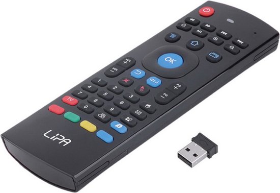 Vous voulez une télécommande pour votre décodeur TV, votre ordinateur ou votre téléviseur qui comprend également un clavier et une Air-Mouse ? La télécommande MX 3 Remote vous offre exactement ces fonctions et est très facile à utiliser ! Air-Mouse et clavier Le MX 3 Remote dispose des touches standard d'une télécommande. Contrairement à d'autres claviers sans fil, la MX 3 Remote vous permet également d'éteindre votre décodeur TV à distance. En outre, la télécommande dispose d'un clavier à l'arrière. Il est extrêmement pratique de disposer également d'un clavier. De cette manière, vous pouvez naviguer avec la télécommande et saisir des données avec le clavier. La souris Air-Mouse, que vous pouvez également utiliser sur votre appareil, est un plus appréciable. Lorsque vous souhaitez à nouveau utiliser le clavier, la fonction souris se désactive automatiquement. Facilité d'utilisation Vous pouvez connecter le clavier via un récepteur USB. Vous trouverez ce récepteur à côté de la batterie du clavier. Il suffit de brancher le récepteur dans l'appareil auquel vous souhaitez le connecter, d'allumer le clavier et la connexion est établie ! Le MX 3 Remote fonctionne avec 2 piles AAA (non comprises dans la livraison). La télécommande MX 3 Remote est idéale pour un décodeur TV. Vous pouvez bien sûr aussi l'utiliser pour votre ordinateur ou votre téléviseur. L'essentiel est qu'elle dispose d'un port USB !