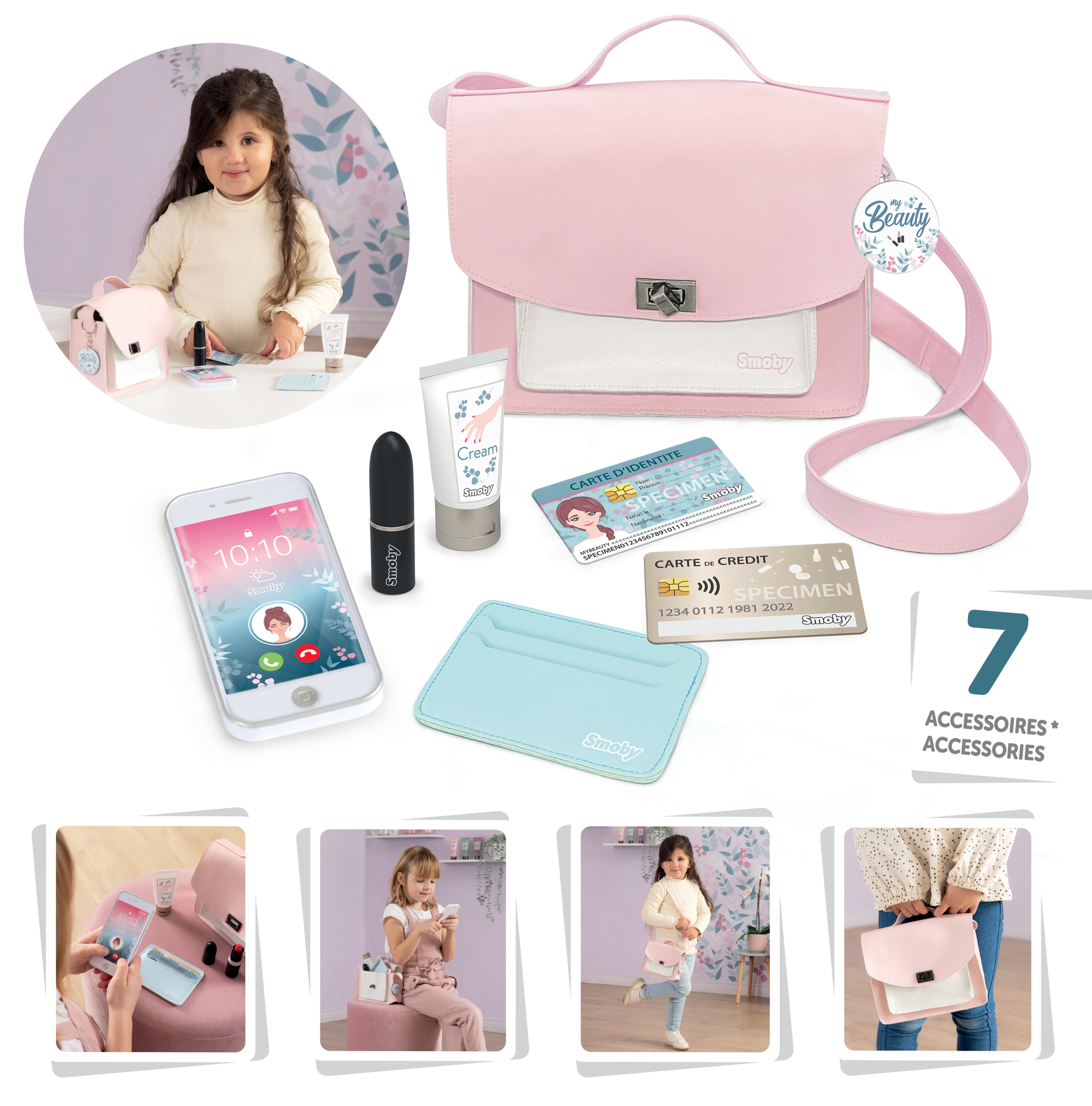 | Plus produit | Sac Beauté en simili cuir avec 2 compartiments de rangement, une hanse et bandoulière pour être emmené partout. 6 accessoires inclus dont faux maquillage. |