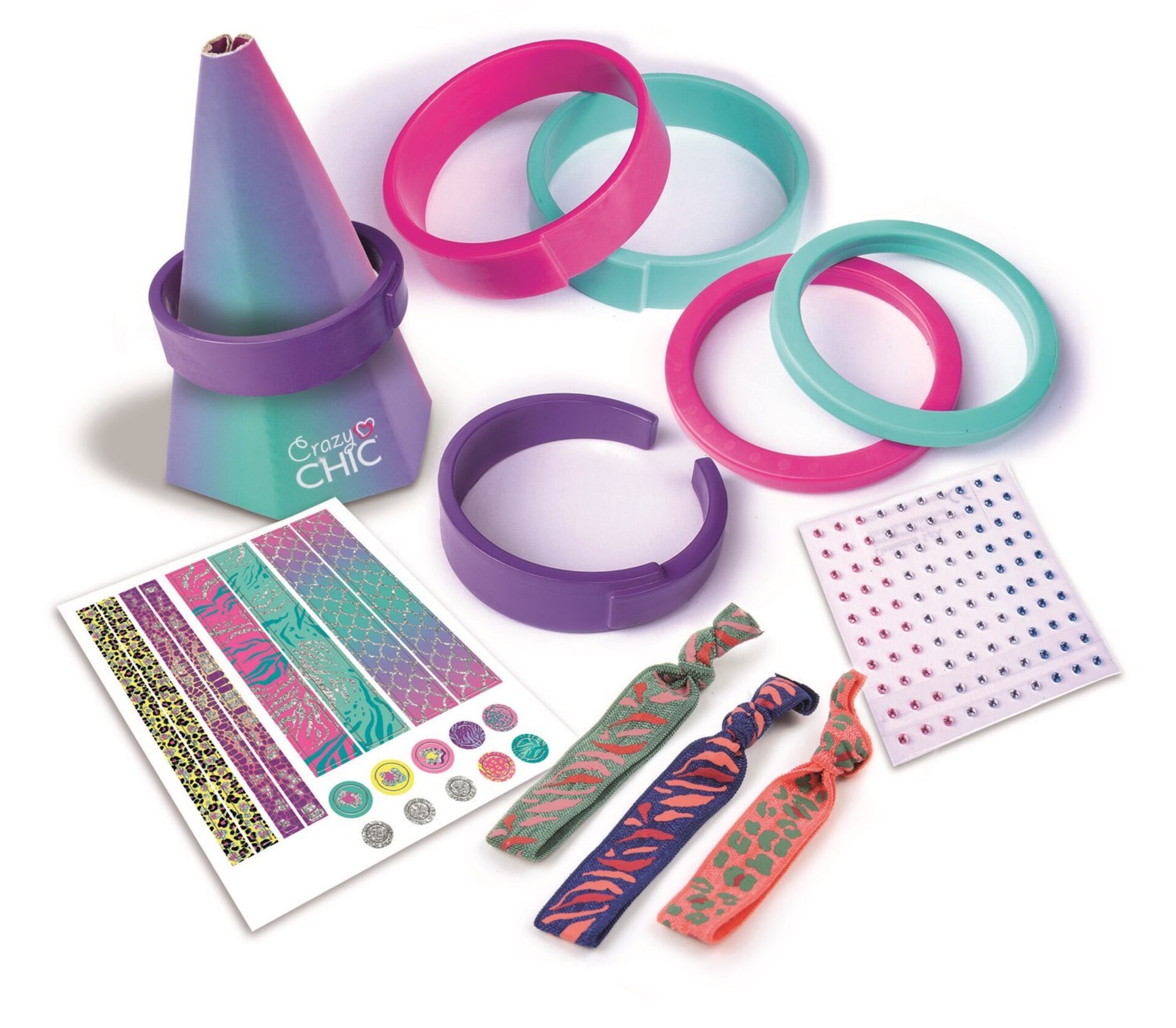 Un coffret pour créer des bracelets super tendances dans le véritable style Crazy Chic ! Les petites filles peuvent personnaliser leurs créations avec les stickers Crazy Animal et les strass colorés. Le coffret comprend également des bracelets élastiques aux motifs variés, prêts à être portés et un porte-bracelets à assembler pour ranger tes créations !