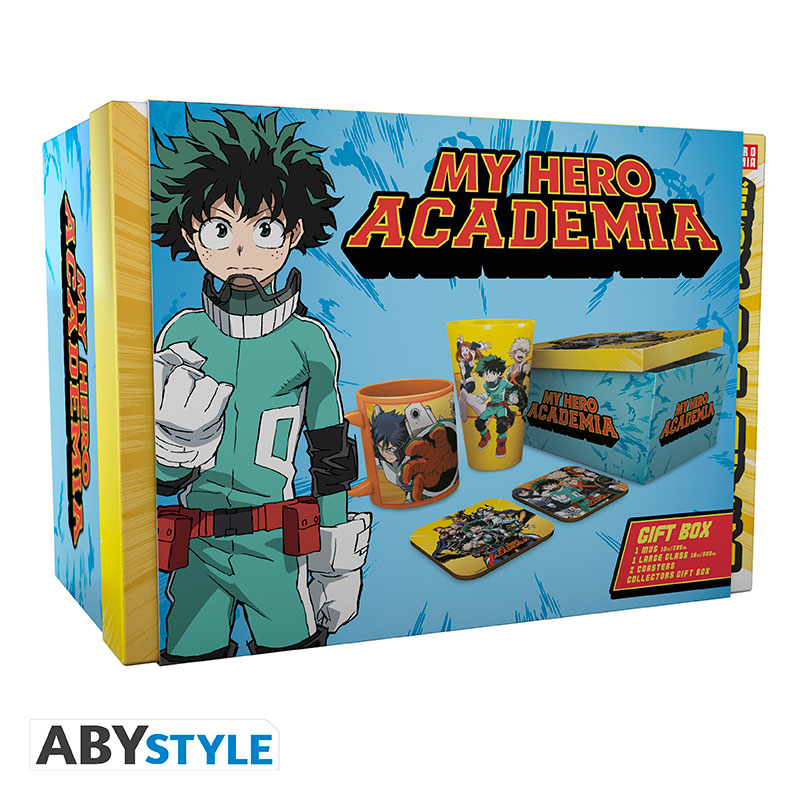Ce coffret cadeau par ABYstyle ravira les plus grands fans de My Hero Academia ! Ce coffret contient : - 1 verre XXL exclusif - 1 mug coloré exclusif - 2 dessous de verre - Les designs exclusifs ne sont pas disponibles à l'achat séparément - Dimensions : 22 x 16,5 x 10 cm - Packaging collector unique à la licence.