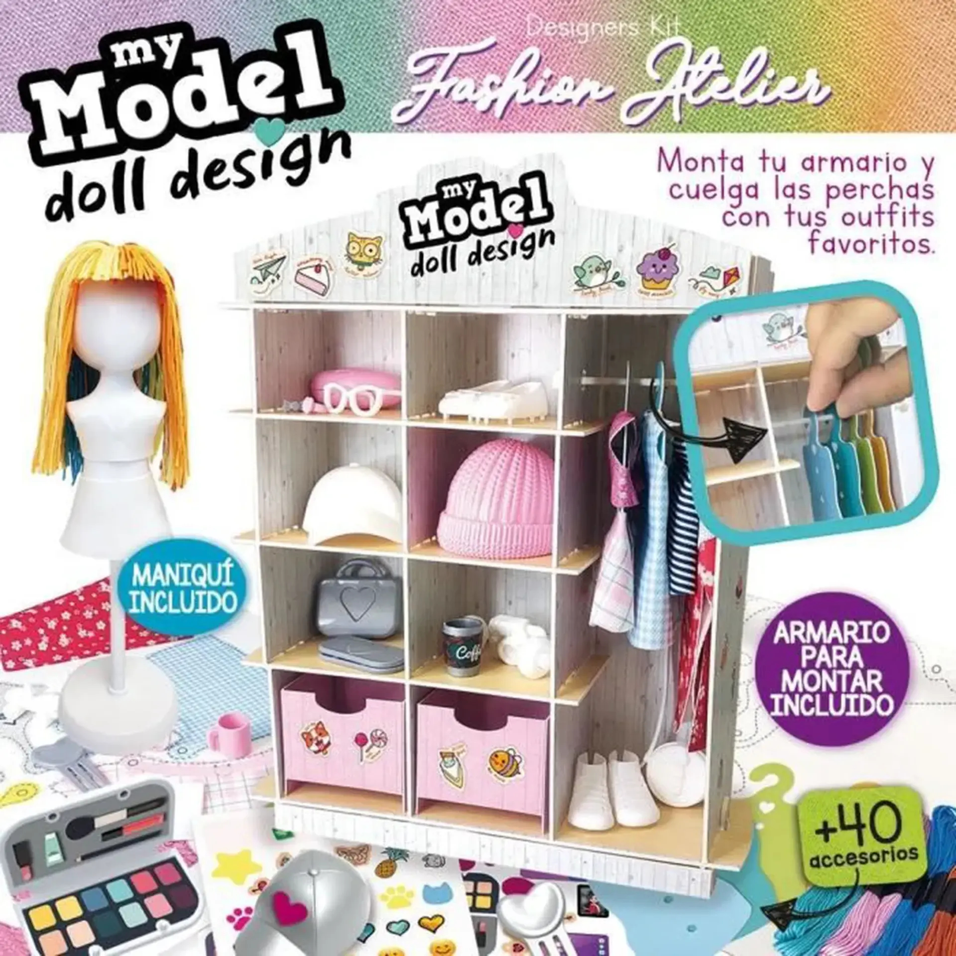La boîte comprend tous les éléments nécessaires pour créer des tenues avec les motifs imprimés ainsi que les motifs en noir et blanc à créer. Il comprend un mannequin pour présenter les vêtements conçus et une armoire pour ranger tous les modèles et accessoires de My Model.