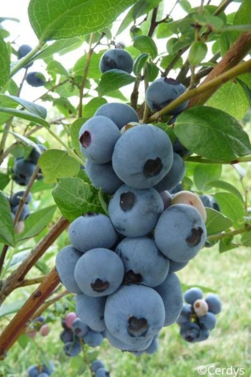 Conseils de plantation : La variété de myrtilles 'Brigitta Blue' pousse et fructifie très bien au soleil comme à la mi ombre. Elle aime les sols acides, humifères et bien drainés. Variété résistante au froid.