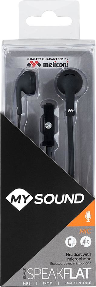 MySound Speak Flat. Type de produit: Casque. Technologie de connectivité: Avec fil. Utilisation recommandée: Appels/Musique. Fréquence des écouteurs: 20 - 20000 Hz. Longueur de câble: 1,2 m, Couleur du produit: Noir