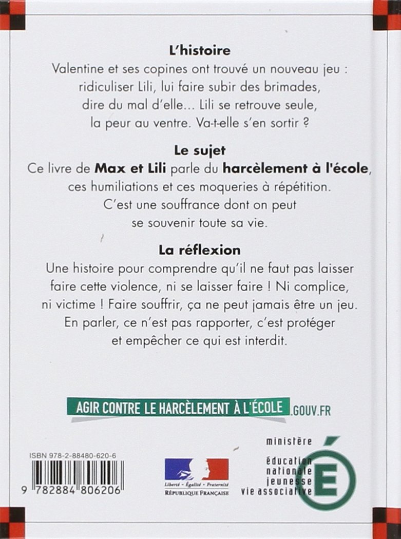 Ce livre de Max et Lili parle du harcèlement à l'école, cette violence qui ne dit pas son nom, ces humiliations et moqueries à répétition.