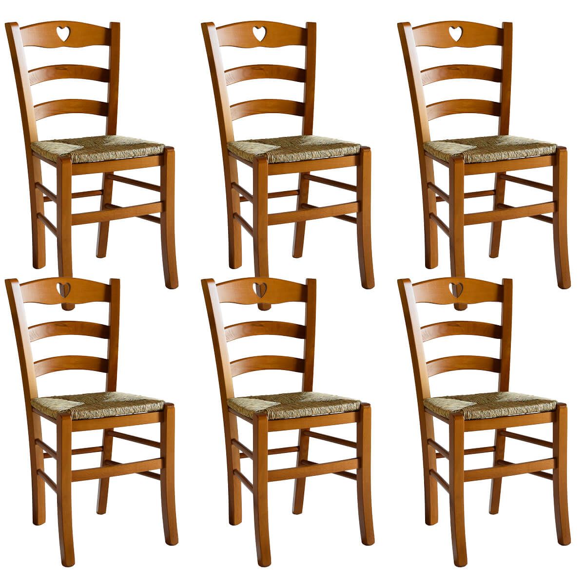 Lot de 6 Chaises Teinté Chêne et Assises en Paille de la gamme Naples.