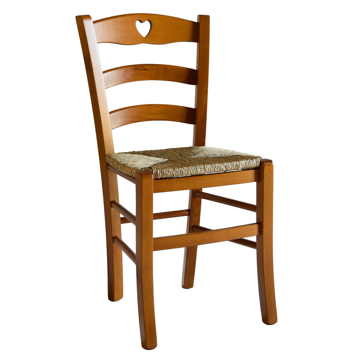 Structure en hêtre massif teinté coloris chêne. Assise en paille. Chaise livrée montée pour une utilisation immédiate.