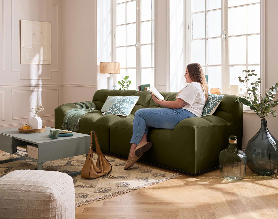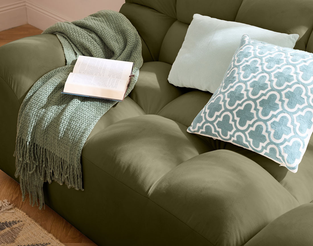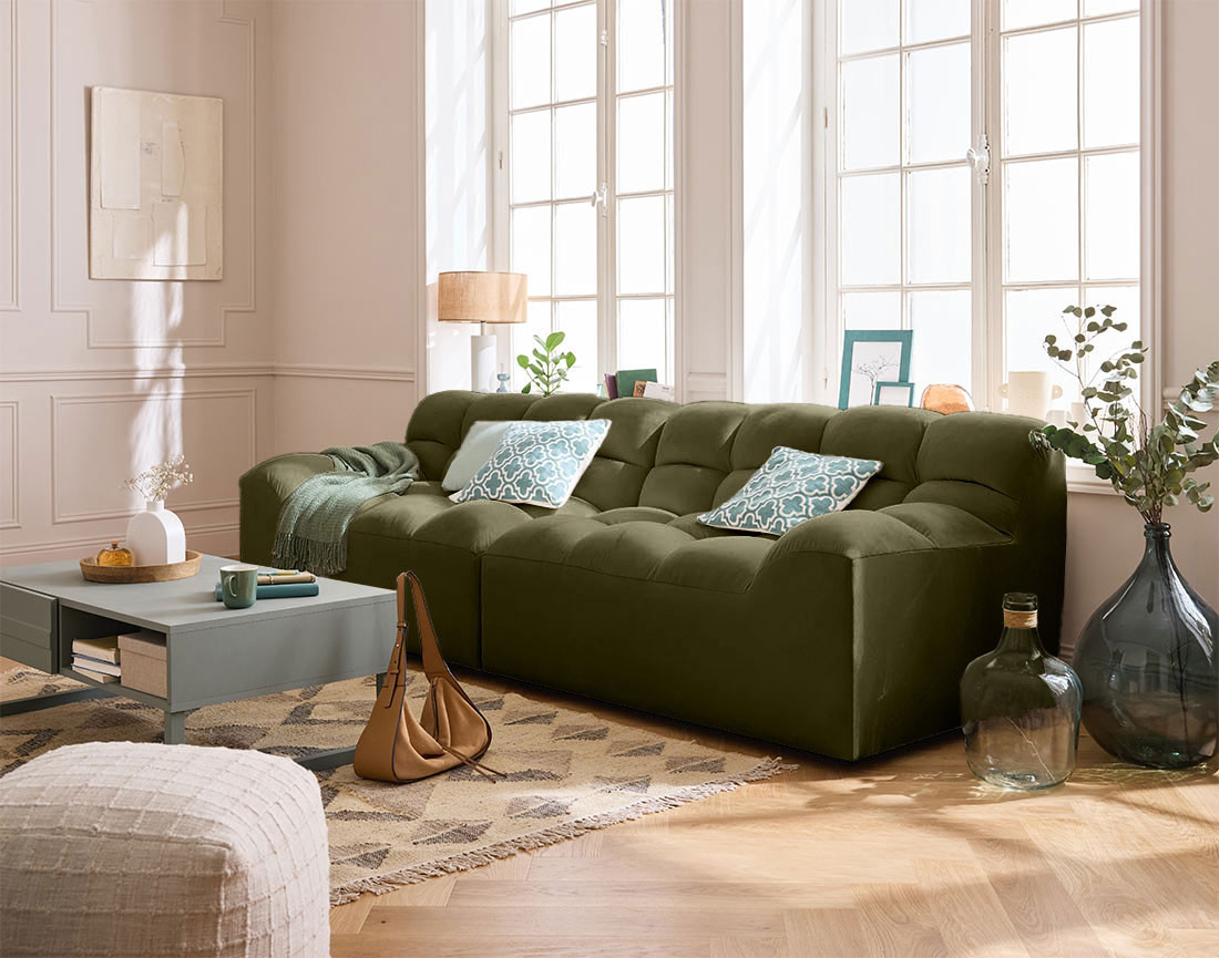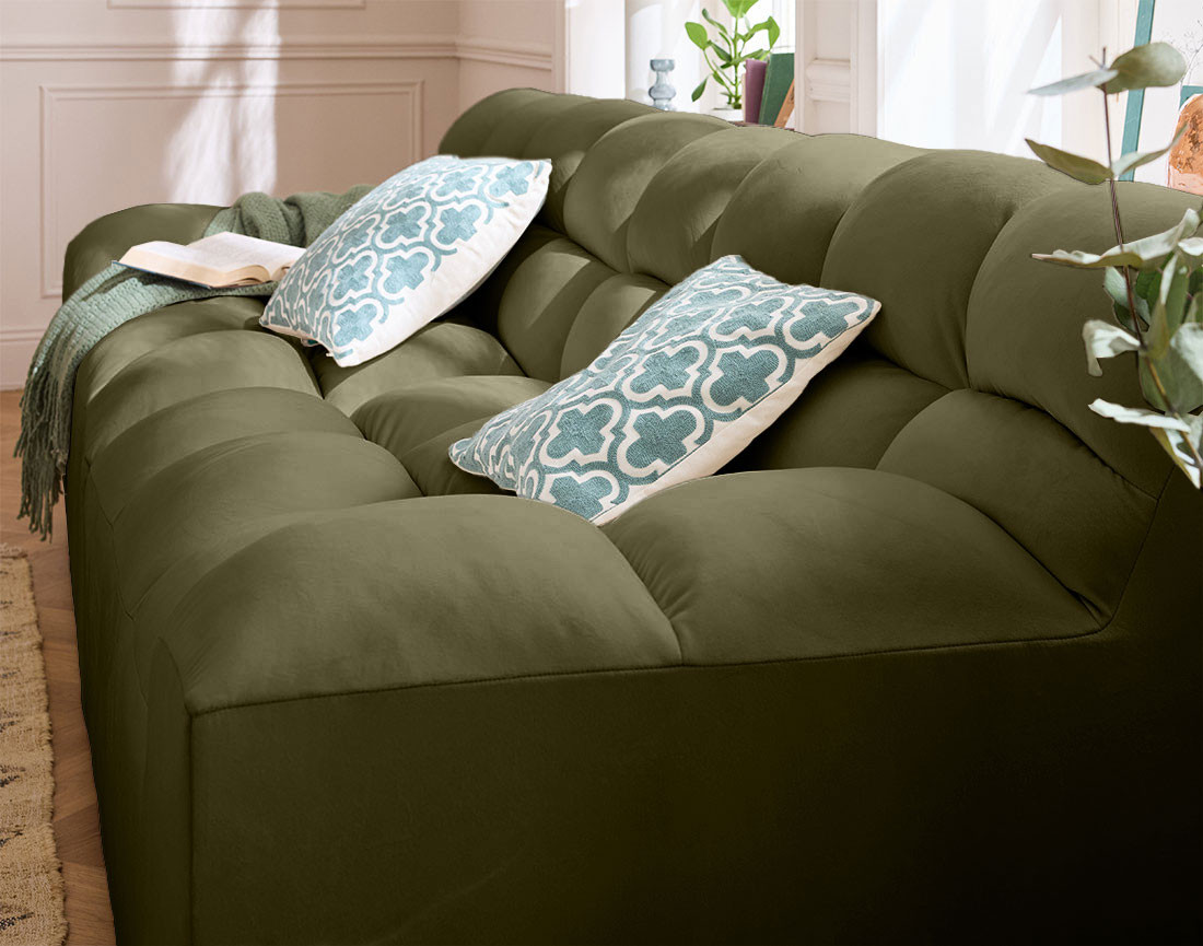 - Présentation de la collection : Découvrez le canapé Napoli en velours : tendance et doux au toucher, avec une assise bombée ultra-confortable.