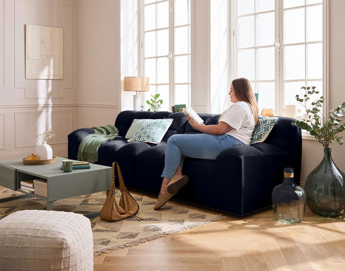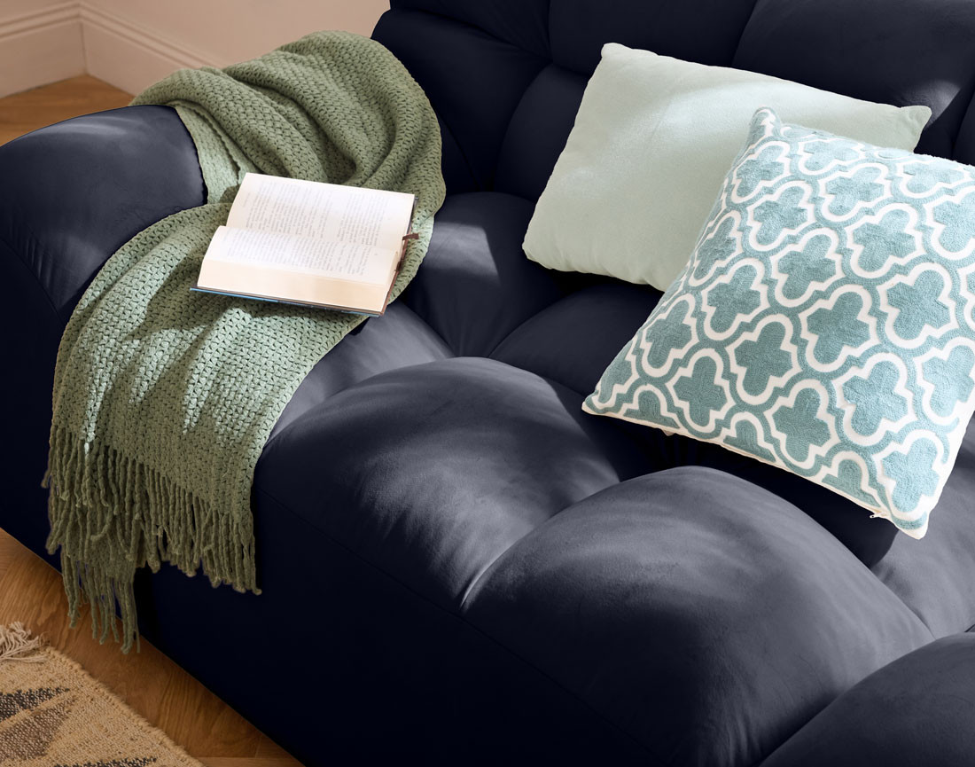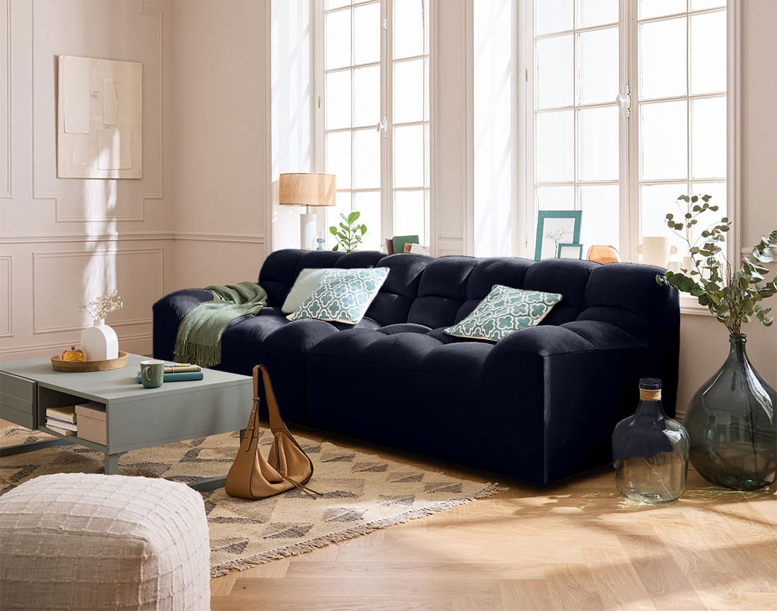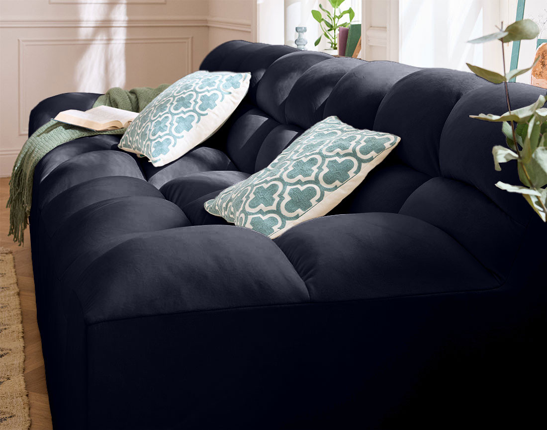 - Présentation de la collection : Découvrez le canapé Napoli en velours : tendance et doux au toucher, avec une assise bombée ultra-confortable.