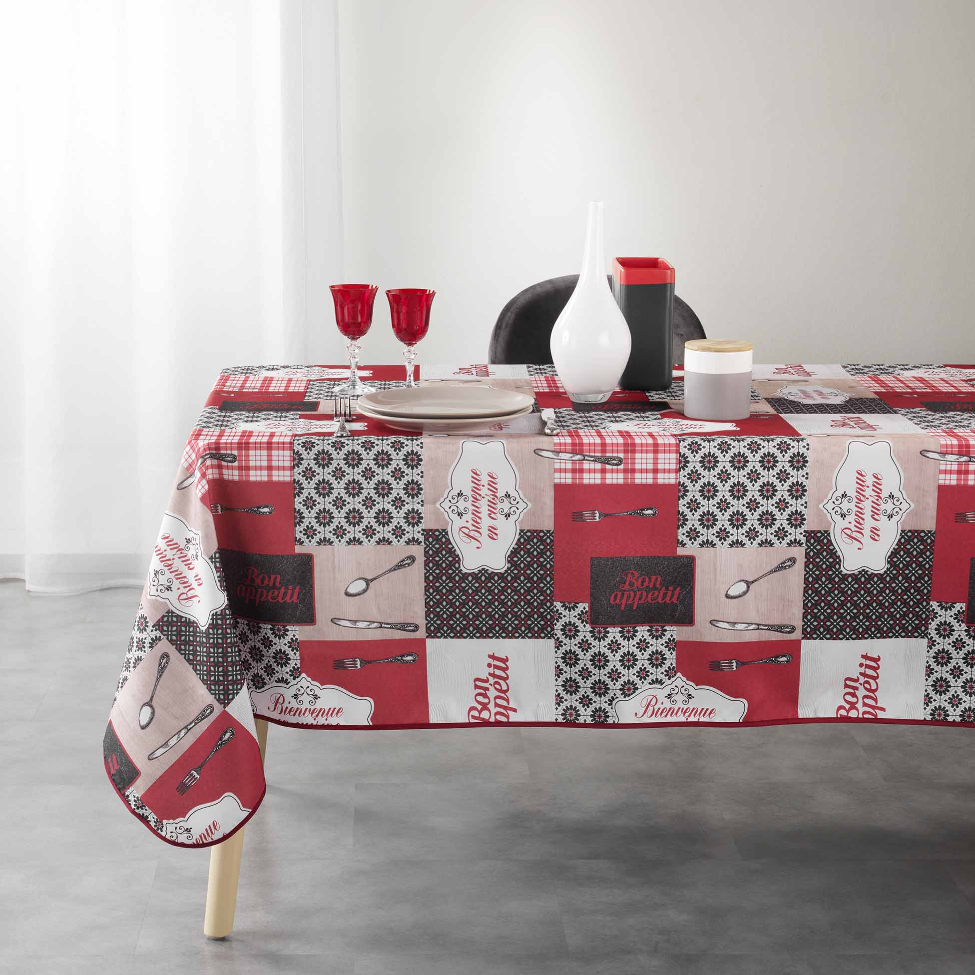 Nappe 150 x 240 cm Modele Tissu Lavage en machine à 30° C'est une protection de table aussi élégante que pratique car elle est facile d'entretien grâce à son revêtement ! Repassage sur l'envers Matière: 100 % polyester Finition : Couture biais Dans la même collection des Galettes de chaise, rideaux, Coussins pour un intérieur de style