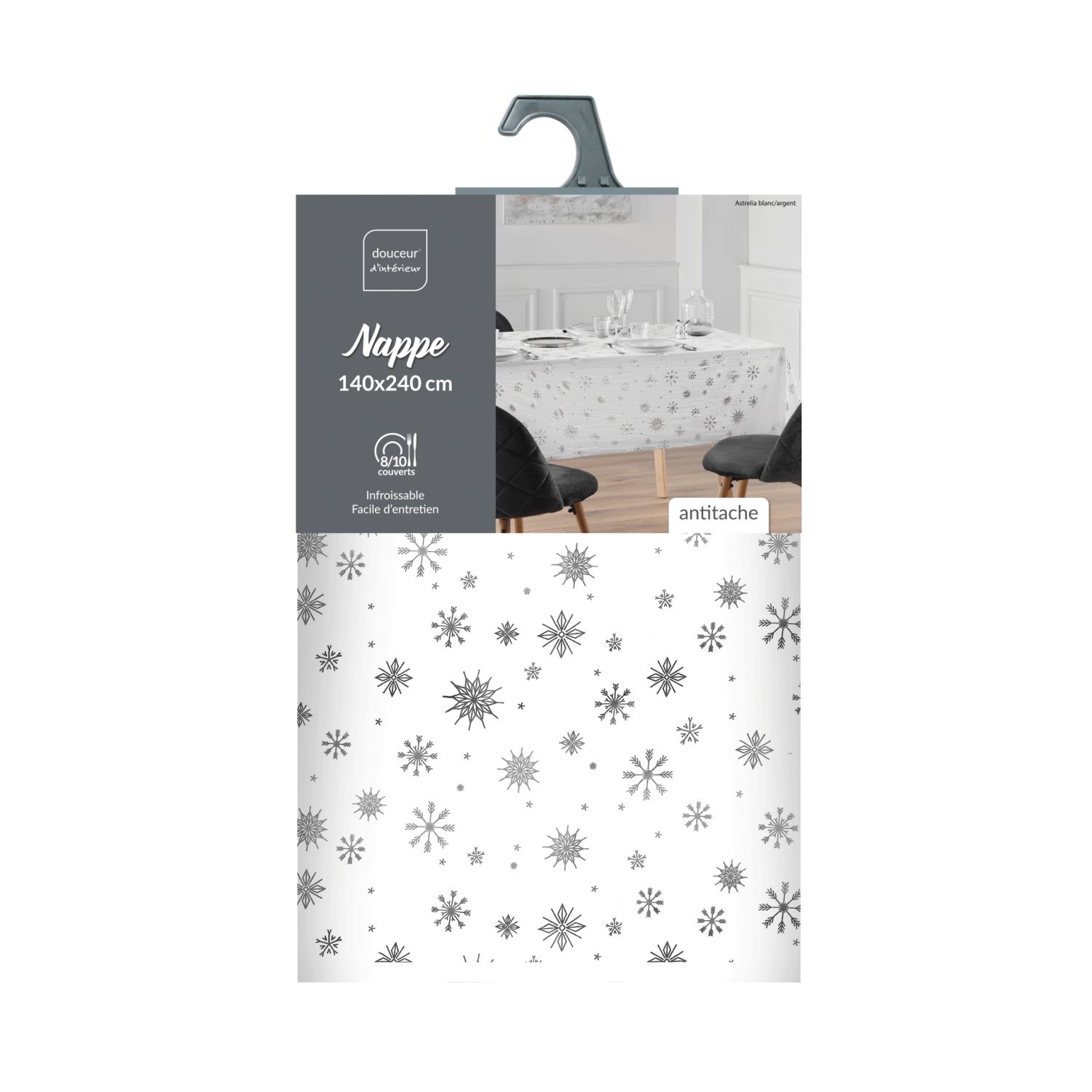 | Libellé | Nappe antitache rectangulaire - Flocons argent |