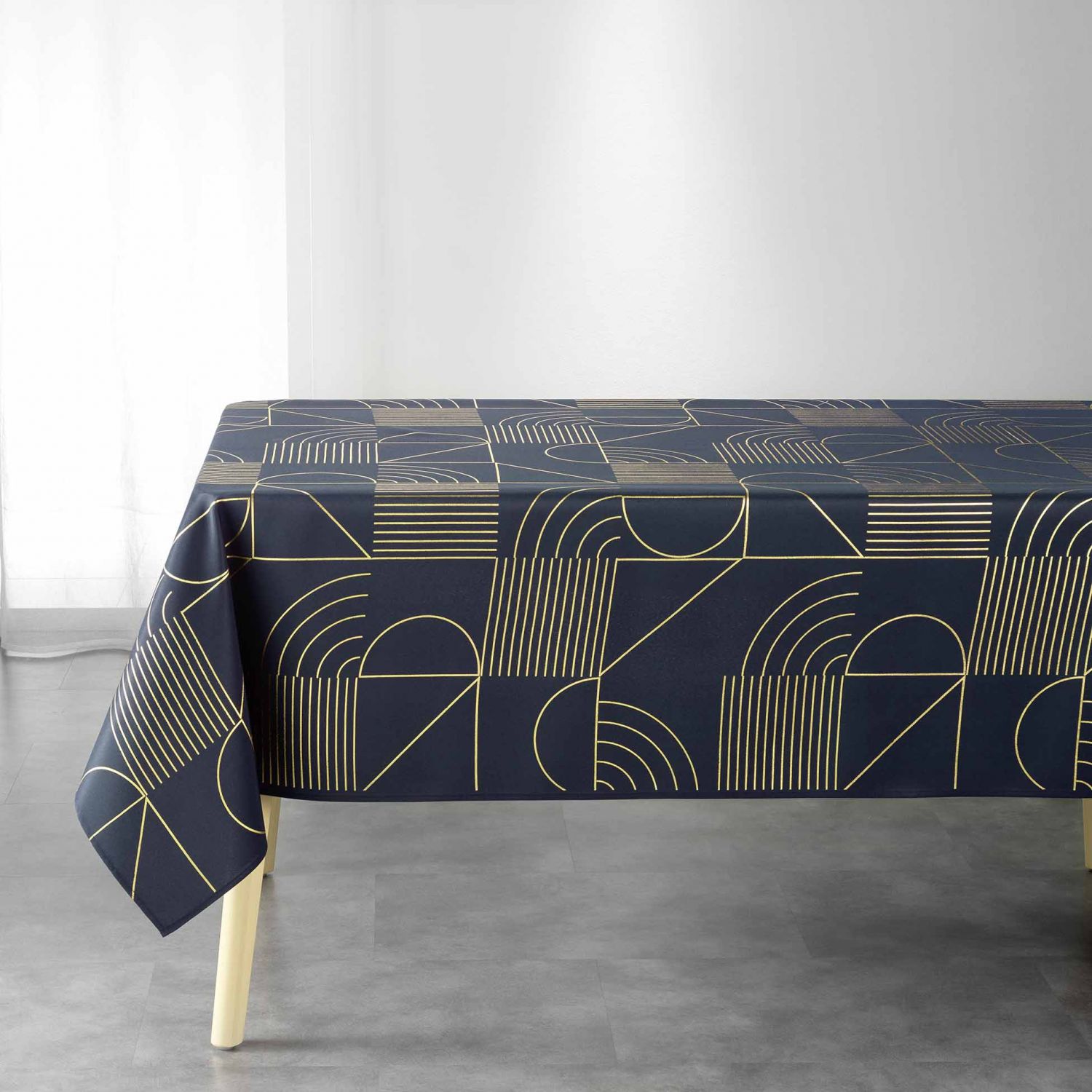 Nappe anti-tache, motifs géométriques or métallisé sur fond bleu marine