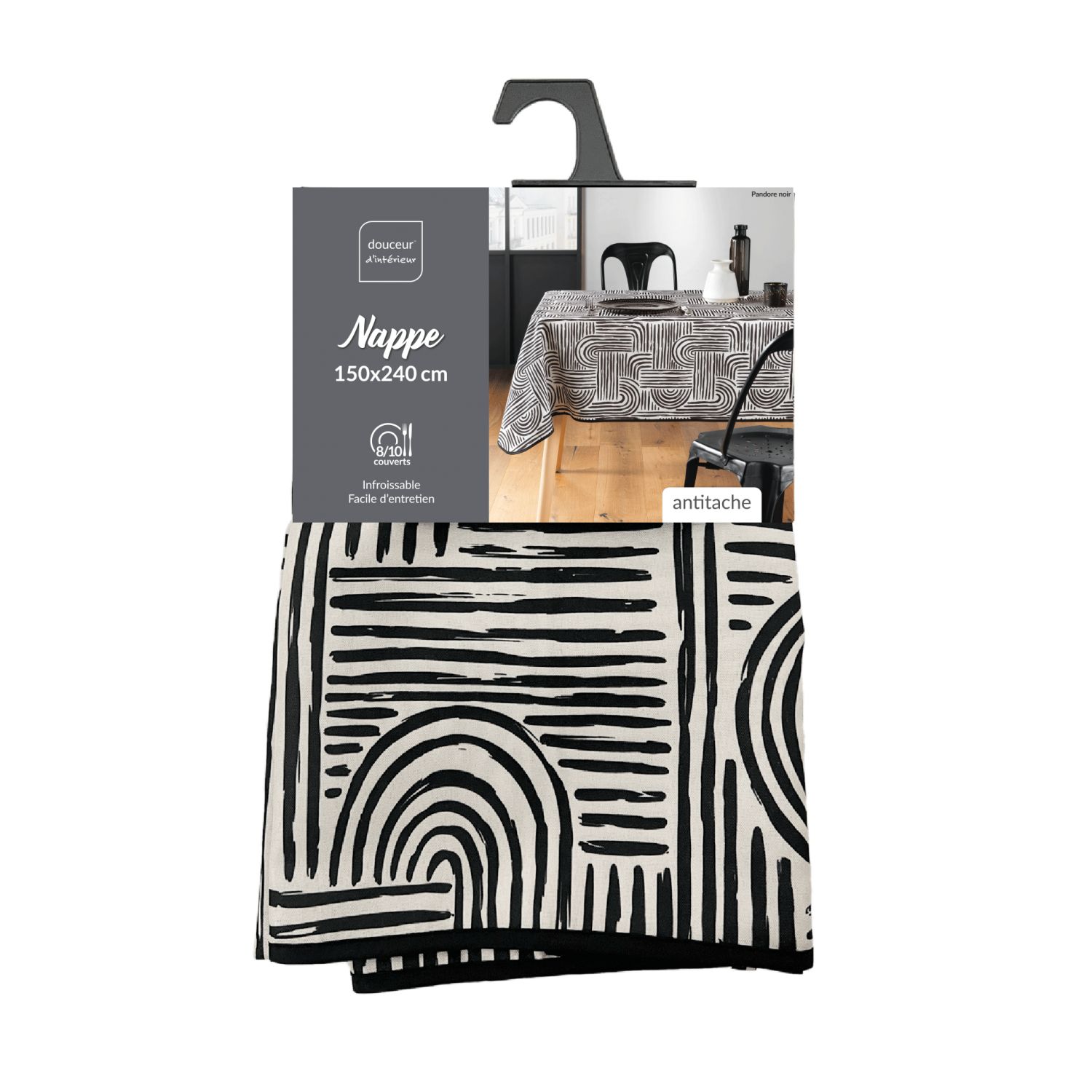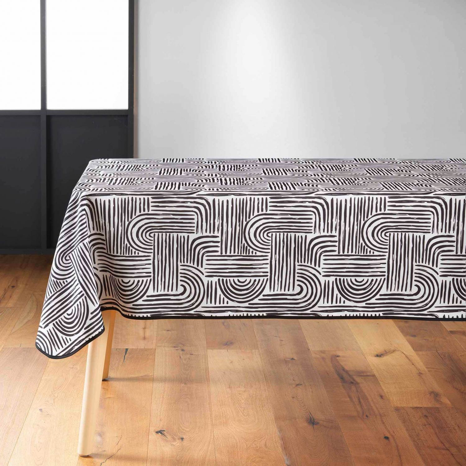 | Libellé | Nappe antitache rectangulaire - Traits noir sur fond beige |