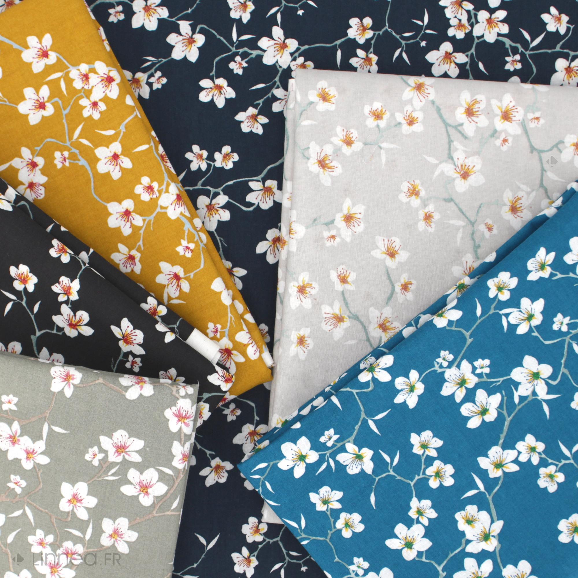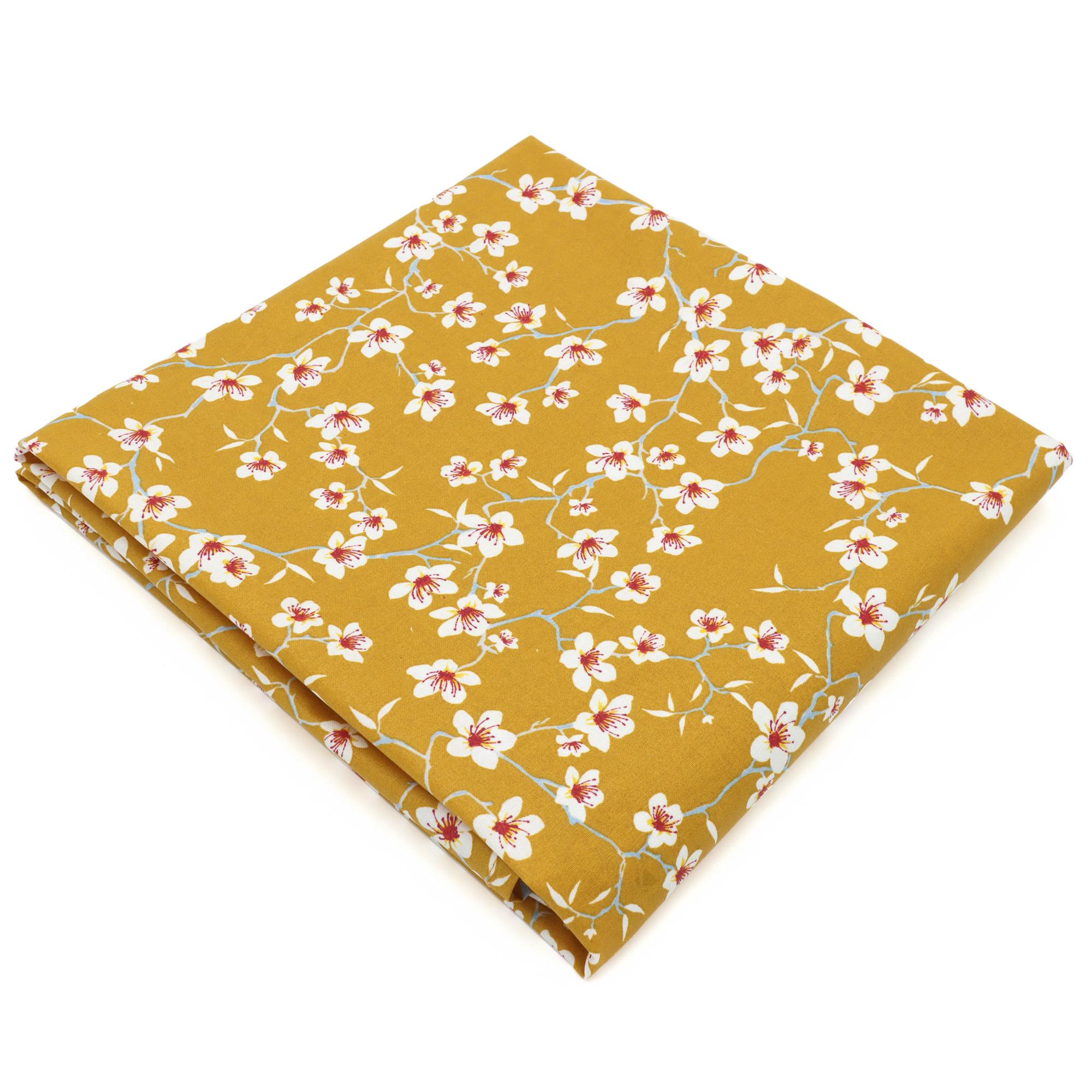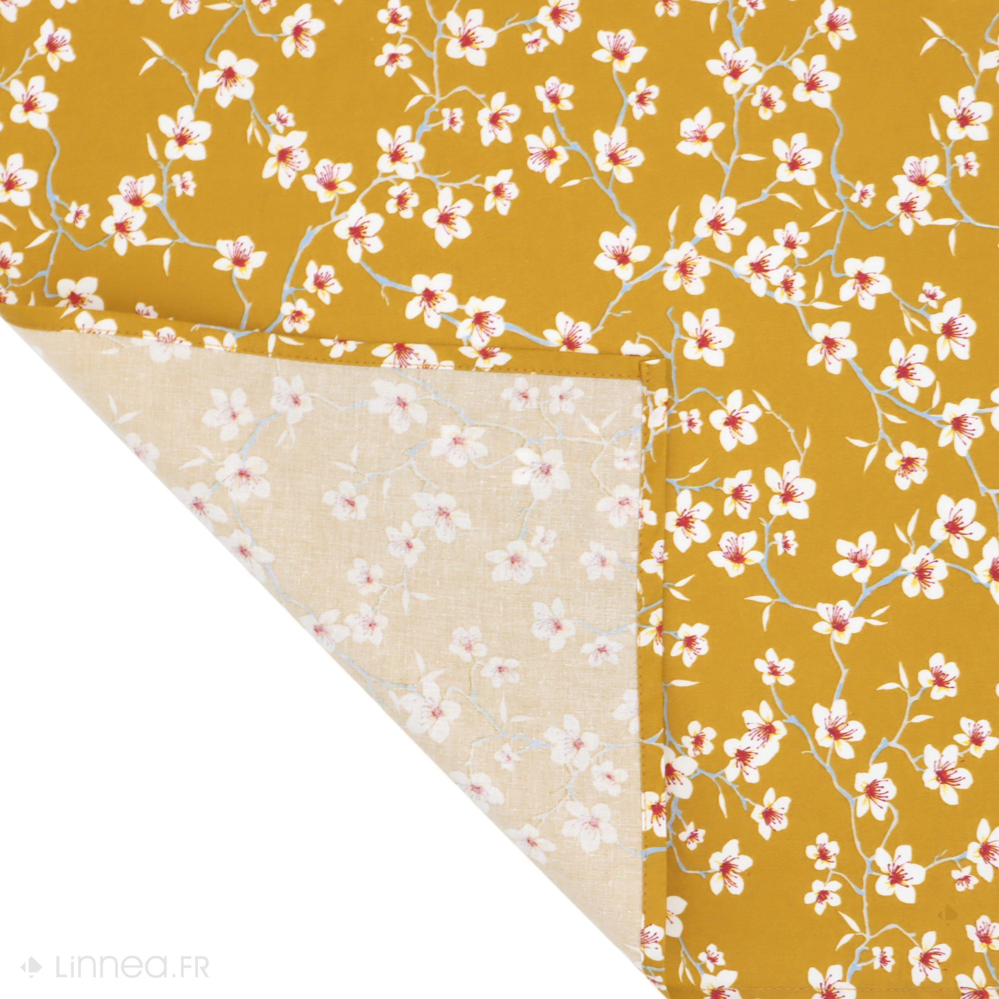 | Plus produit | Nappe carrée 120x120 cm AMANDIER Safran Collection faite à la main avec passion et souci du détail, coton cretonne enduit anti tâches finition ourlet simple |