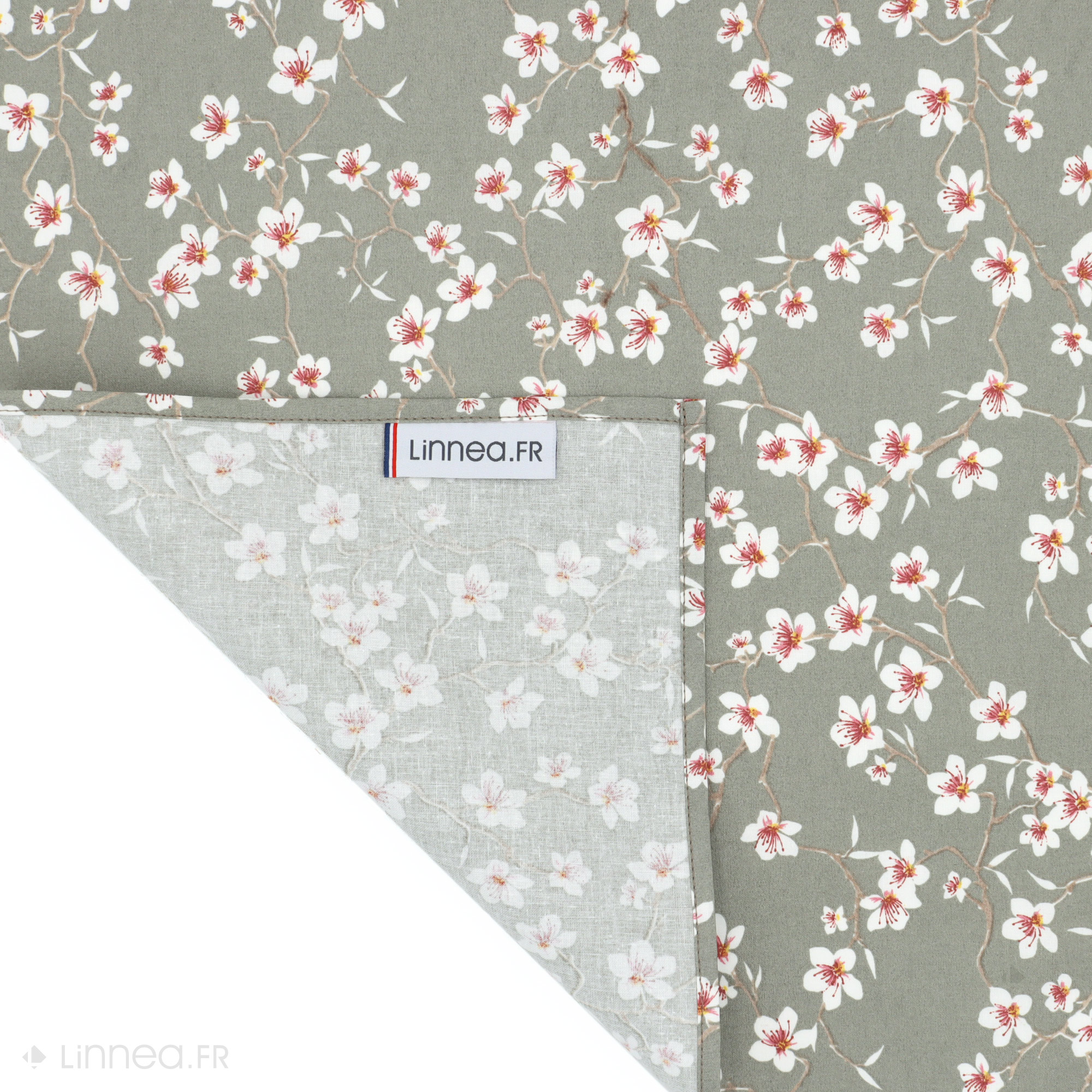| Plus produit | Nappe carrée 80x80 cm AMANDIER Sauge Collection faite à la main avec passion et souci du détail, coton cretonne enduit anti tâches finition ourlet simple |