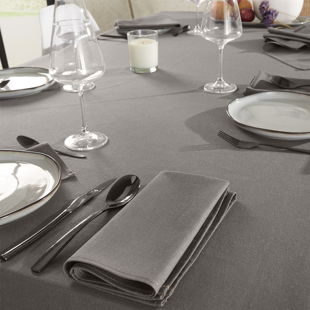 Nappe exclusivement fabriquée en France : tissage, teinture et confection, dans la pure tradition du savoir-faire textile Français,