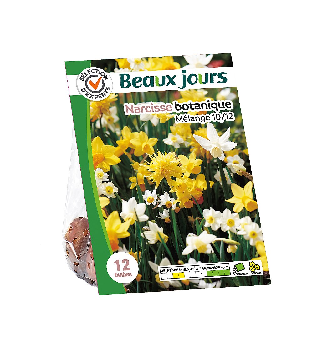 | Libellé | Narcisse botanique mélange couleurs calibre 10/12 - 12 bulbes - Sélection d'Experts - Beaux Jours |