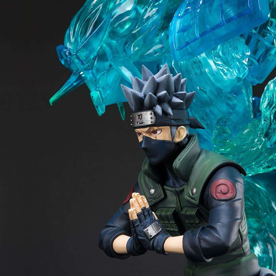 Voici Kakashi qui arrive dans la gamme Figuarts Zero Kizuna Relation. Il est possible de la combiner à la Figuarts Zero de Sasuke sortie précédemment ainsi qu'à celle de Naruto. Kakashi en train d'invoquer Susanoo magnifiquement réalisé en PVC transparents. Hauteur = 43 cm. Matériau : PVC.