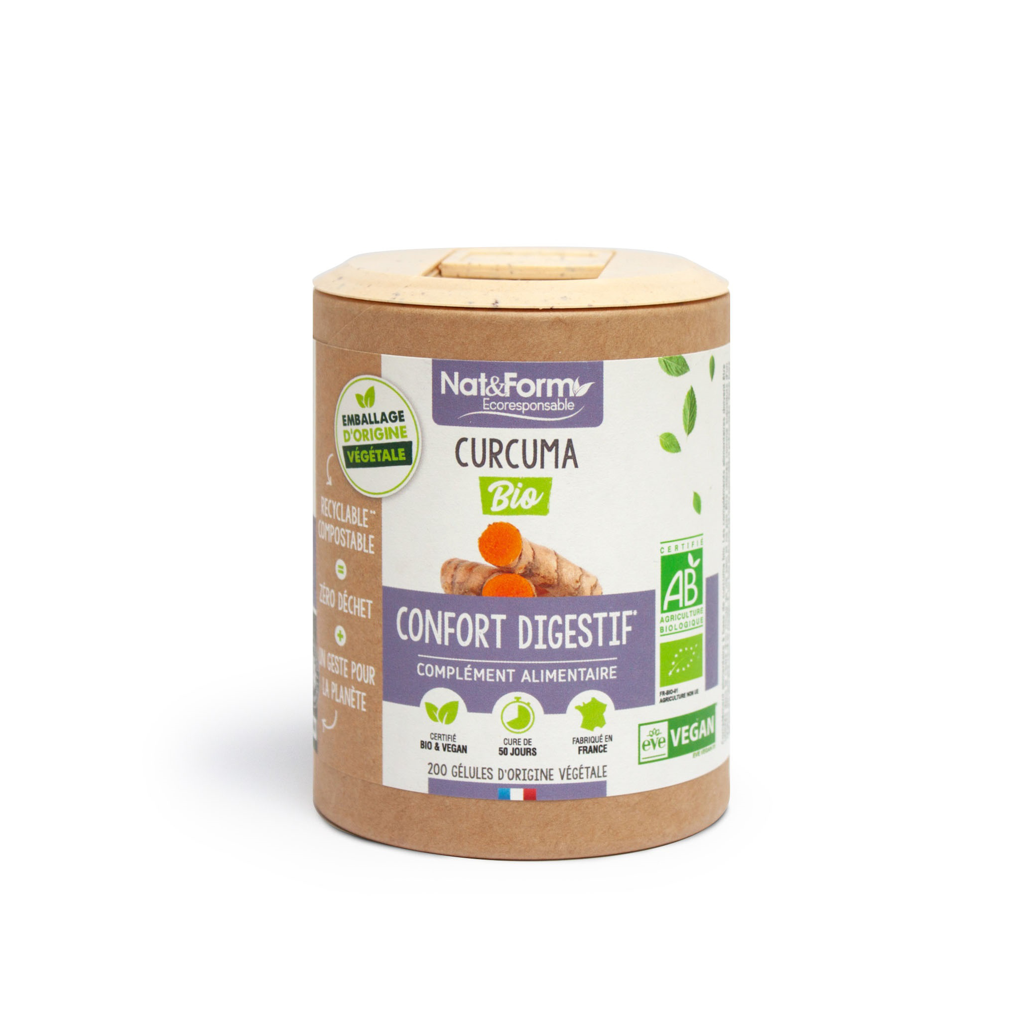 | Libellé | Nat & Form Curcuma Bio Eco Confort Digestif 200 Gélules Végétales |