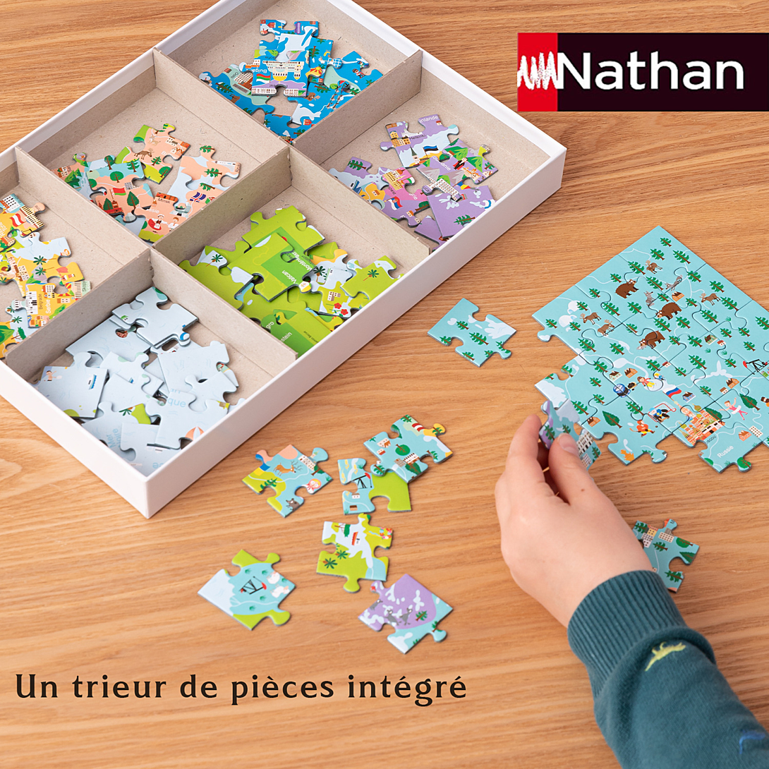 | La boîte contient | 1 puzzle de 150 pièces, 1 trieur à 6 compartiments intégré dans la boite |