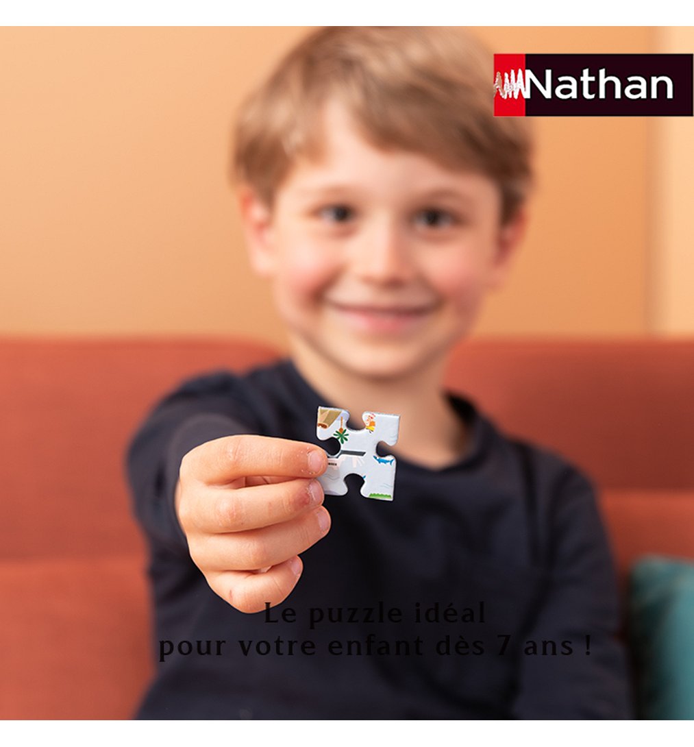 Plus produit LUDIQUE ET EDUCATIF : Les puzzles Nathan disposent d\'un trieur de pièces à 6 compartiments dans la boîte, ce qui permet à l\'enfant de pouvoir trier les pièces par forme et par couleurs dominantes. À 7 ans, l\'enfant apprend à maitriser la technique de réalisation d\'un puzzle ! MORTELLE ADELE : Assemblez ce puzzle, pièce après pièce, au côté de votre héroïne au caractère bien trempé, Mortelle Adèle. Adèle est une petite fille qui assume ses différences. Avec son humour noir, elle sait apporter des réponses aux difficultés que vivent les enfants ce qui fait d\'elle, un personnage très apprécié de tous. CONTENU : 1 puzzle de 150 pièces, avec trieur de pièces inclus. Dimensions du puzzle : 49 x 36 cm. Une qualité de fabrication impeccable : matériau extra-épais et durable résistant aux nombreuses manipulations pour permettre de s\'amuser encore plus longtemps avec son puzzle ! ENVIRONNEMENT : Fabriqué en Europe, ce puzzle est composé de matériaux issus de forêts bien gérées certifiées FSC, de matériaux recyclés et de matériaux issus dautres sources contrôlées (FSC-C111262). De plus, nos puzzles sont garantis 2 ans à compter de la date d\'achat ! UN CADEAU IDEAL pour les enfants dès 7 ans. Les enfants seront ravis de recevoir ce puzzle pour Noël, un anniversaire ou juste pour le plaisir. Il permettra à l\'enfant de s\'initier de manière autonome au puzzle et/ou de permettre aux parents de partager un moment de convivialité et de détente avec leur enfant.