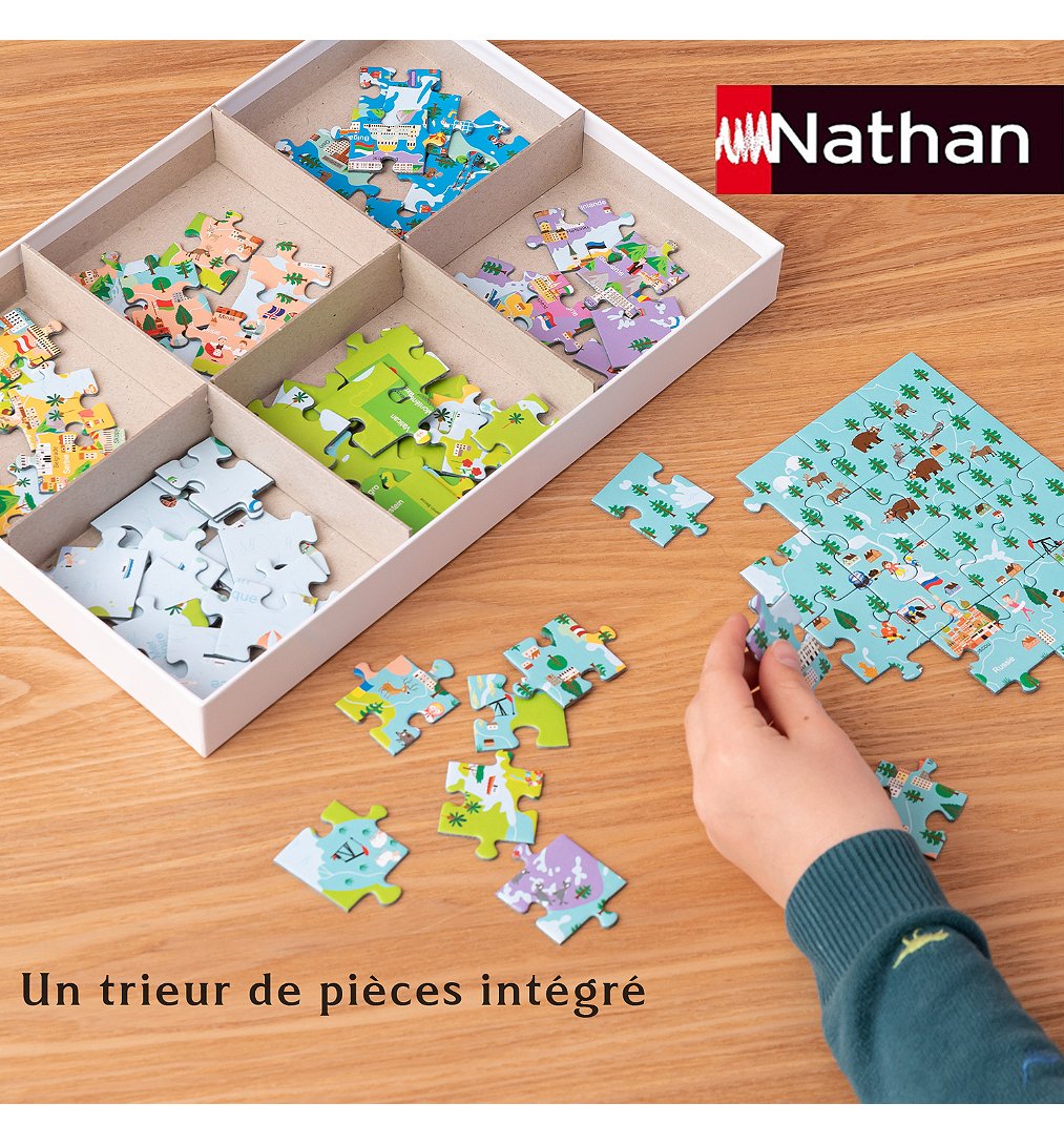 Un puzzle de 150 pièces, avec un trieur de pièces à 3 compartiments, idéalement conçu pour les enfants dès 7 ans.