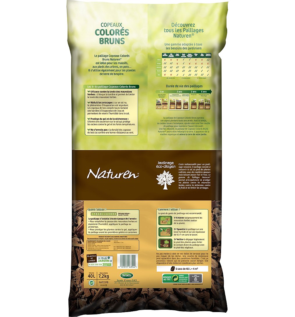 | Libellé | NATUREN Paillage Copeaux de Bois Colorés Bruns 40 L |