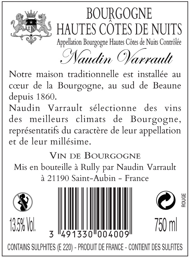| Libellé | Naudin Varrault, 2020 - Bourgogne Hautes-Côtes de Nuits AOC - Rouge - 75 cl |