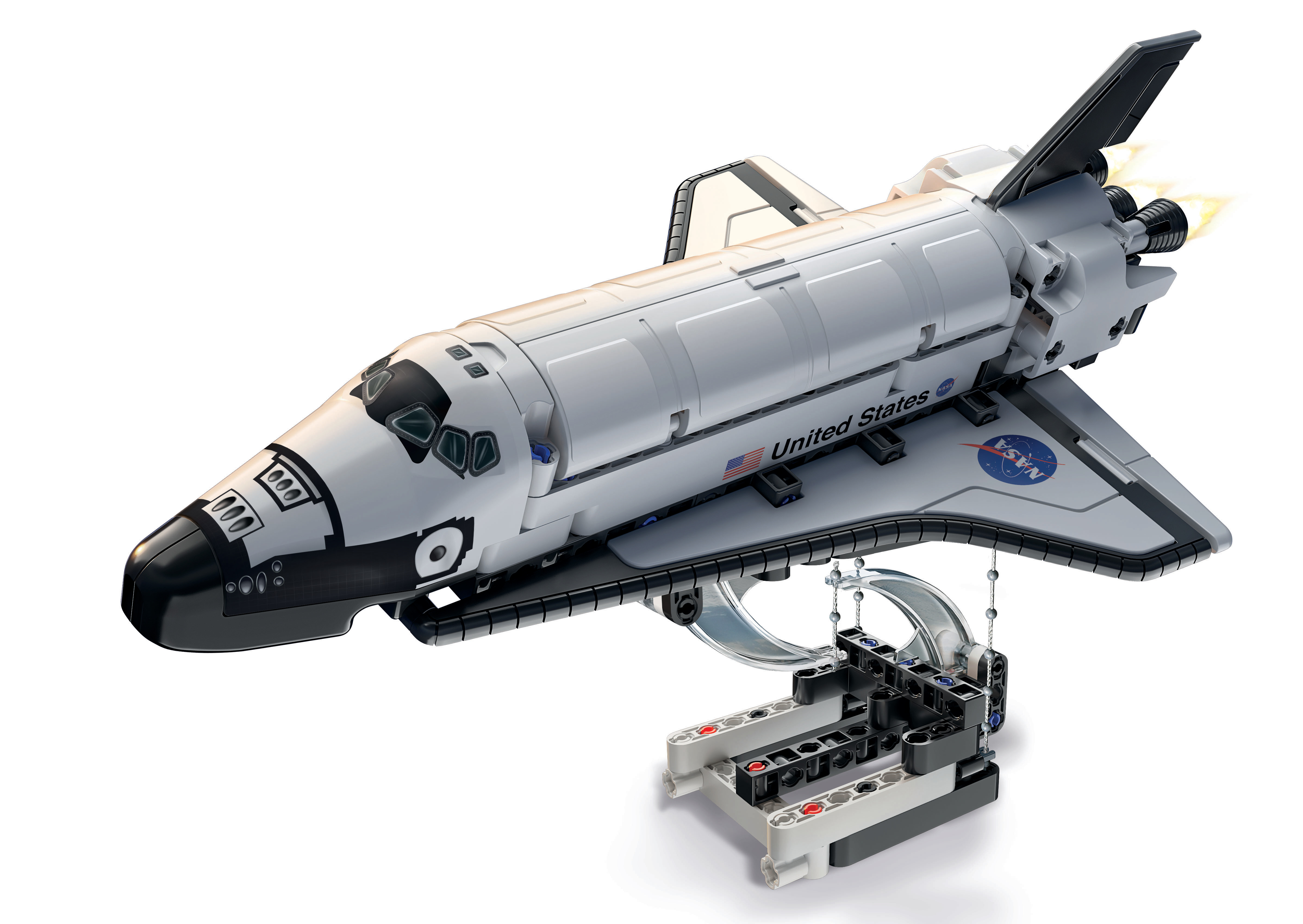 • Une navette spatiale à assembler pour s’envoler vers d’incroyables aventures comme un véritable cosmonaute ! • Les ailerons réglables montent et descendent, la porte cargo s’ouvre et l’on trouve à l’intérieur le Canadarm, le bras robotisé utilisé par les astronautes dans l’espace. • Sous l’effet de la tension des cordelettes, la navette à assembler semble flotter dans les airs ! • En suivant les instructions présentes dans le manuel et dans l’application, l'enfant expérimente ce qui se cache derrière l’illusion optique : la tenségrité, un principe physique à découvrir.
