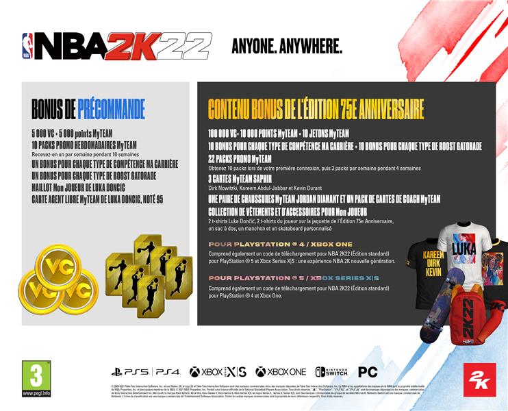 | Libellé | NBA 2K22 - Édition 75ème Anniversaire (PS5) |