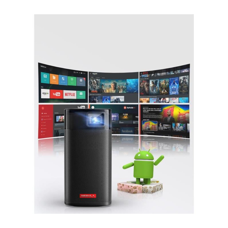 Nebula Apollo. Luminosité du projecteur: 200 ANSI lumens, Technologie de projection: DLP, Résolution native du projecteur: WVGA (854x480). Durée de vie de la source lumineuse: 30000 h. Mise au point: Manuel, Décalage: 100%. Standards wifi: 802.11b, 802.11g, Wi-Fi 4 (802.11n), Profils Bluetooth: A2DP. Capacité de stockage interne: 8 Go, Mémoire interne: 1 Go