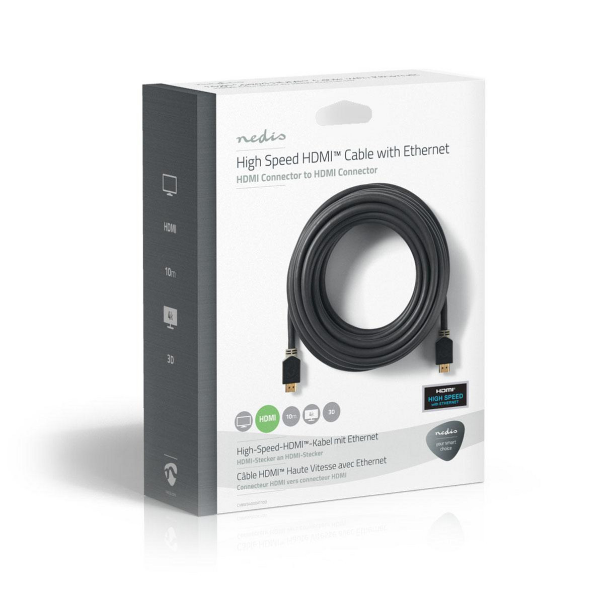 NEDIS Câble HDMI 10M Haute Vitesse avec Ethernet Connecteur HDMI - Connecteur HDMI 10 m Anthracite