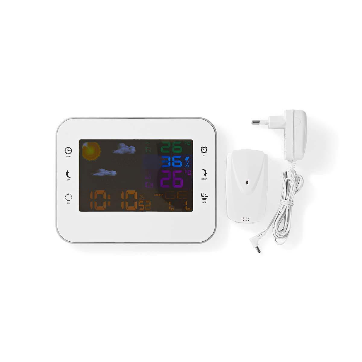 NEDIS Station Météo Blanc Capteur sans fil Réveil Prévisions Météorologiques Intérieur Extérieur