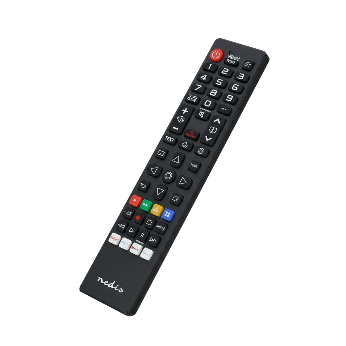 Télécommande de Remplacement Préprogrammée Nedis pour TV LG prête à l'emploi dès l'insertion des piles. Remplace une télécommande perdue ou cassée sans programmation grâce aux codes intégrés et aux fonctions essentielles de la version d'origine. Base de données large pour retrouver les commandes principales. Boutons raccourci Netflix Amazon Prime Disney+. Transmission Infrarouge pour 1 Appareil.
